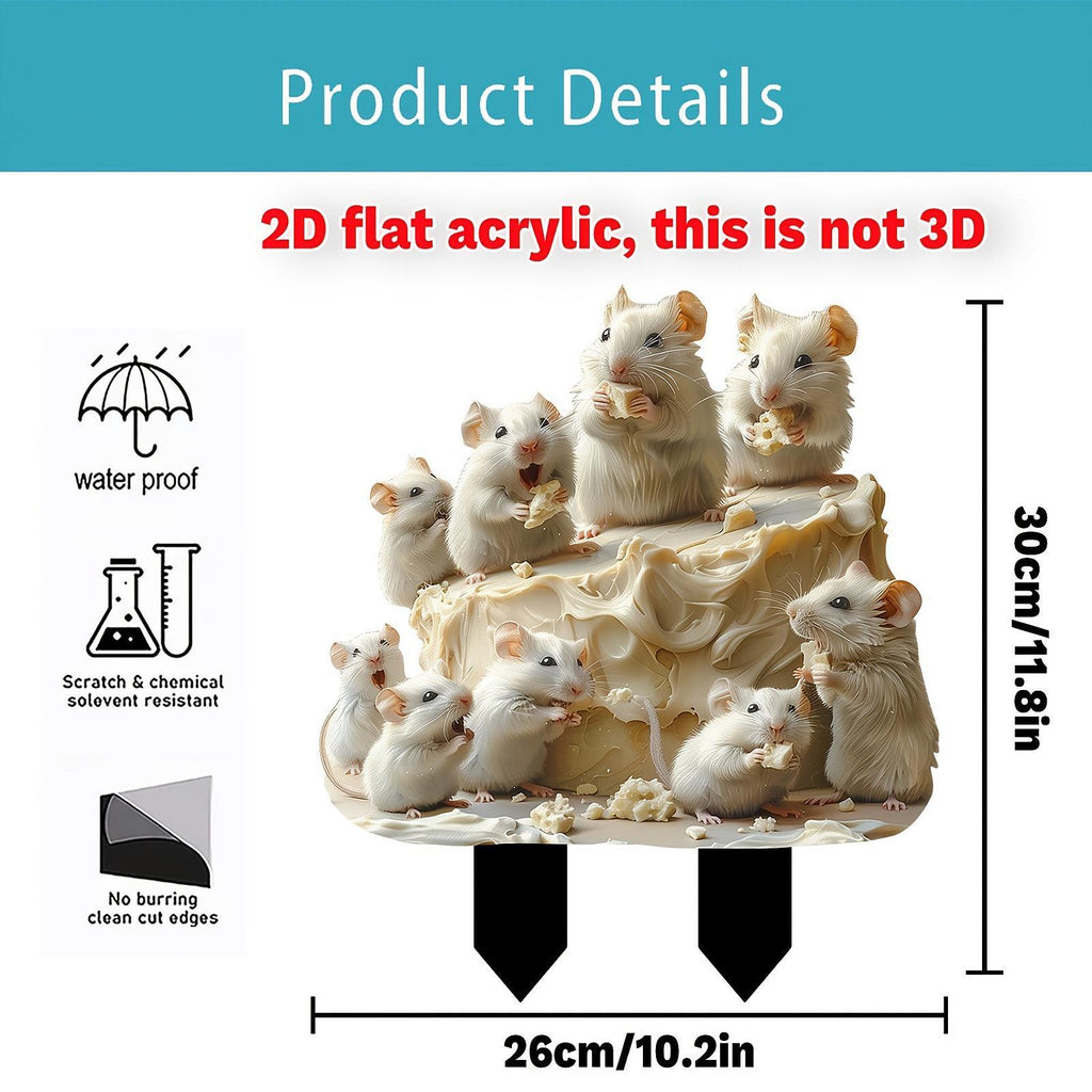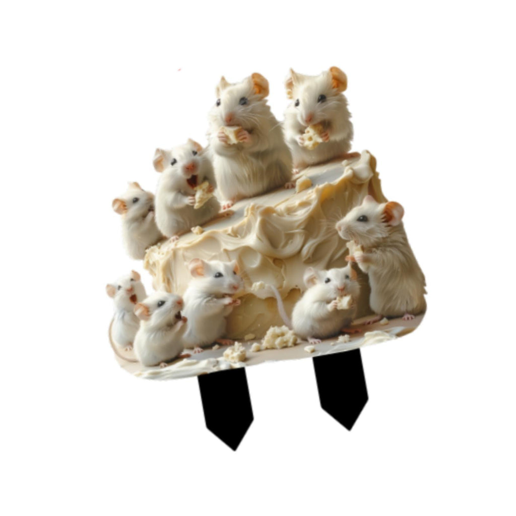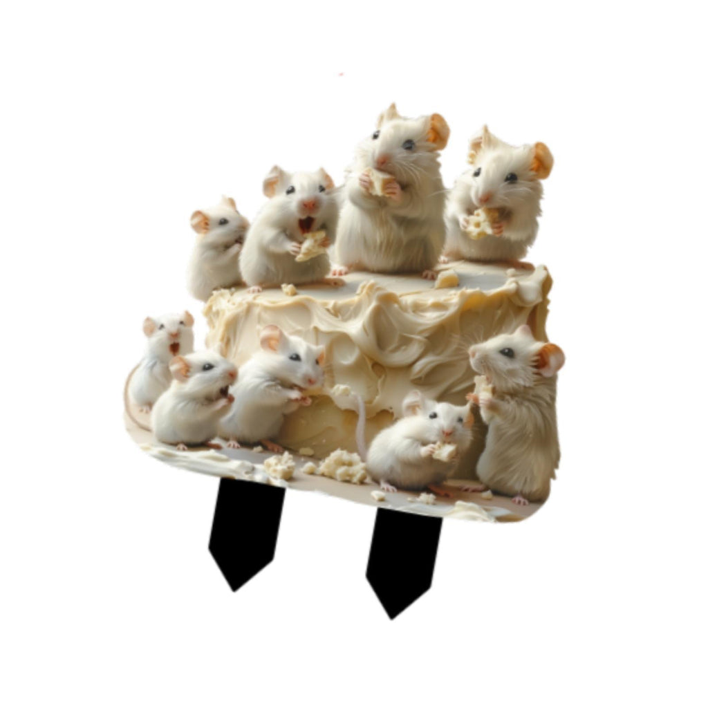 Maxbell 2D Mice and Cheese Ground Stake Outdoor Decor for Lawn Flower Pot Front Yard