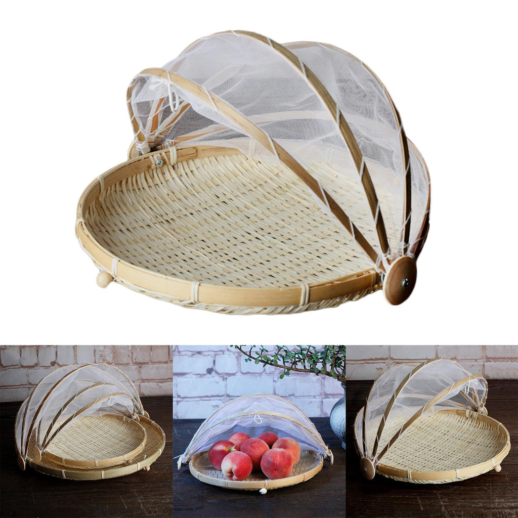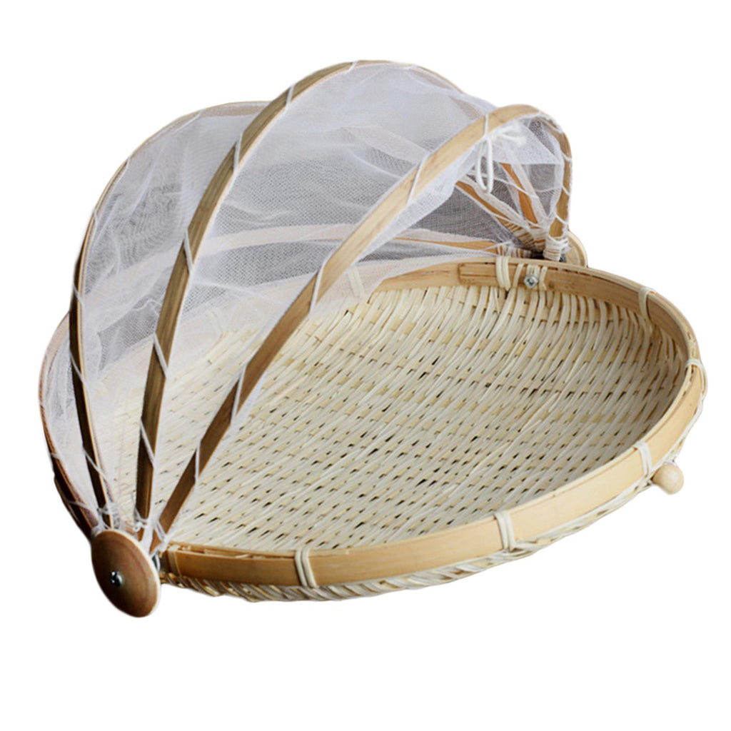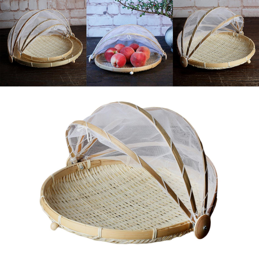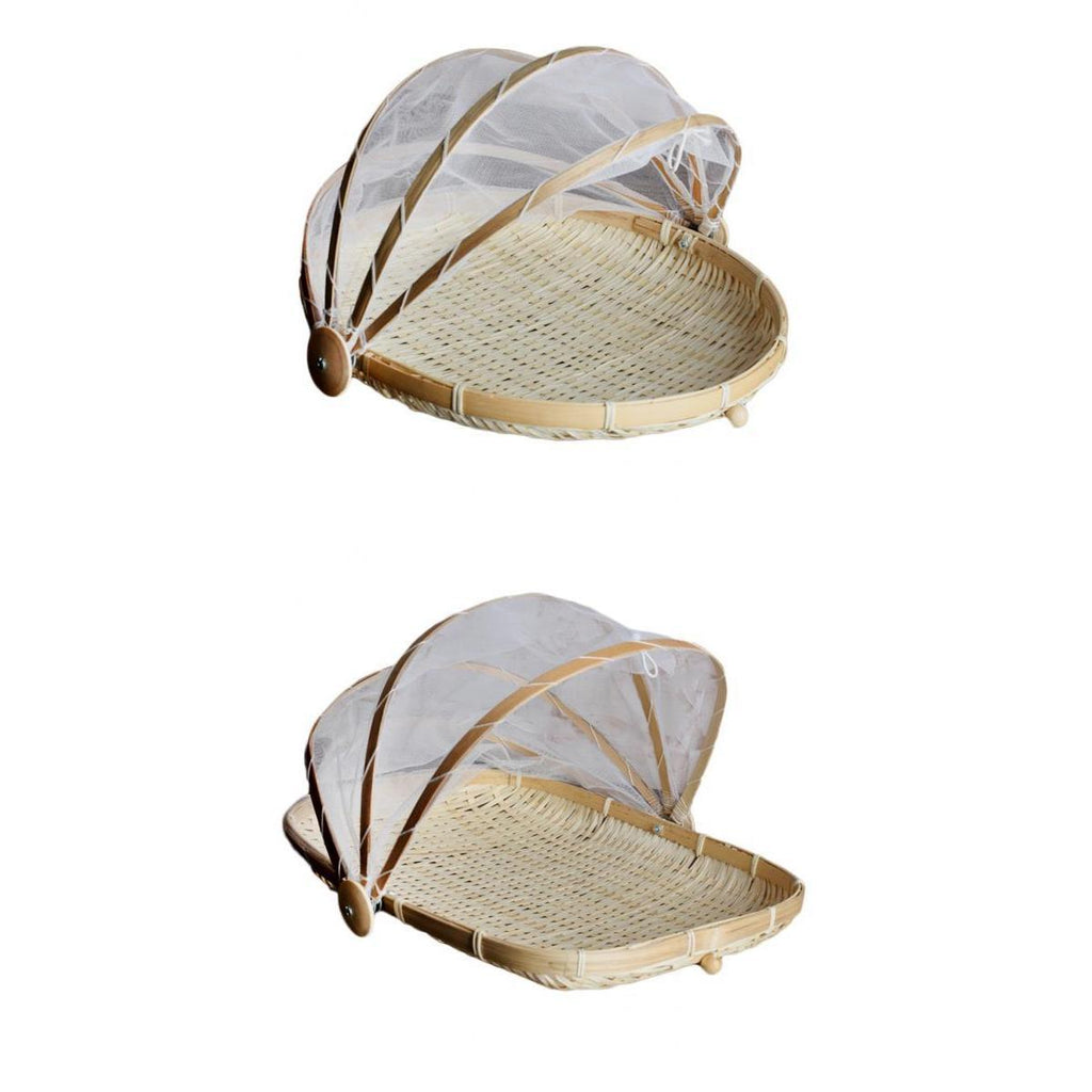 Maxbell 2pcs Bamboo Tent Basket Serving Food Outdoor Picnic Pop Up Mesh Net Cover S