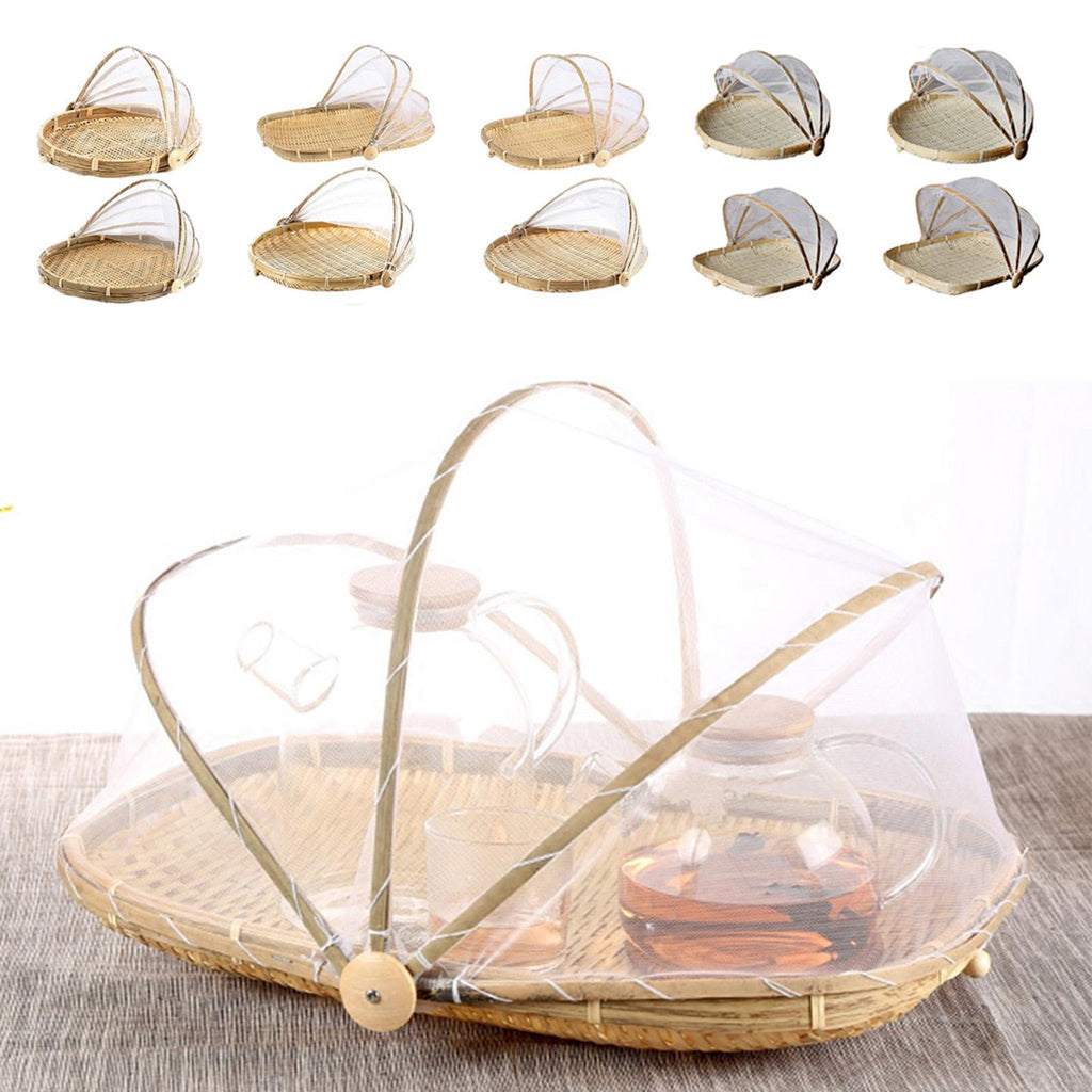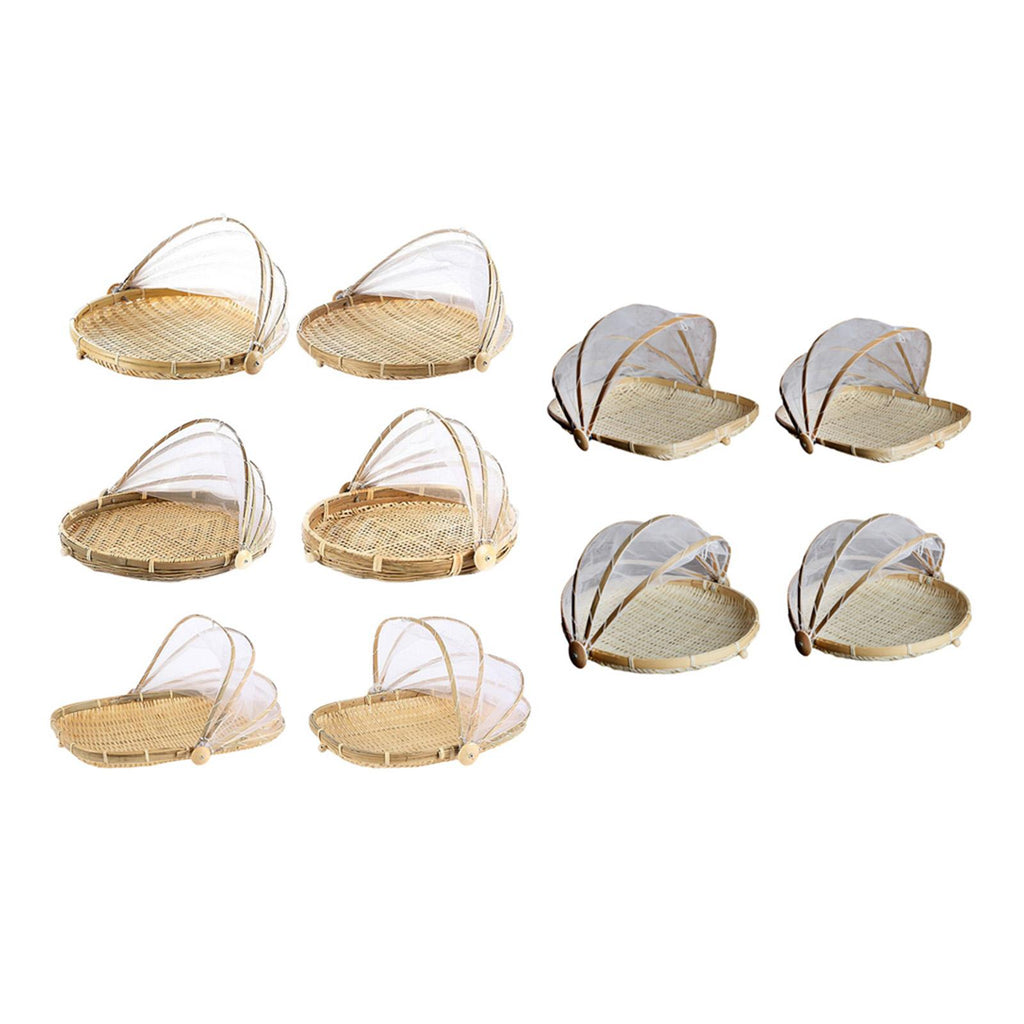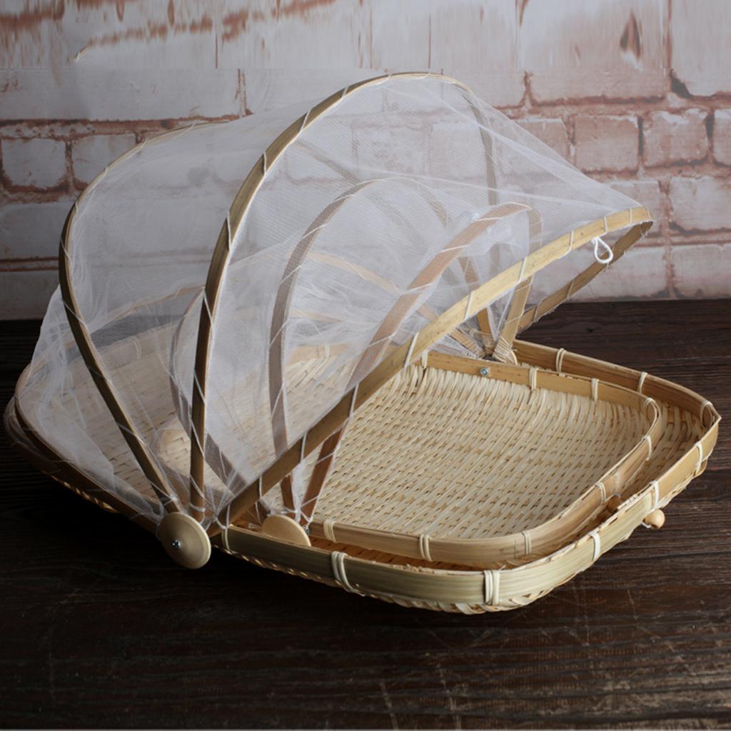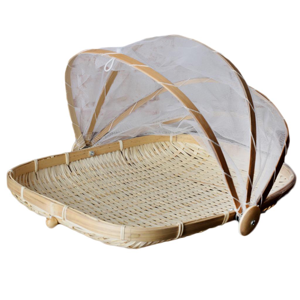 Maxbell 2pcs Bamboo Tent Basket Serving Food Outdoor Picnic Pop Up Mesh Net Cover S