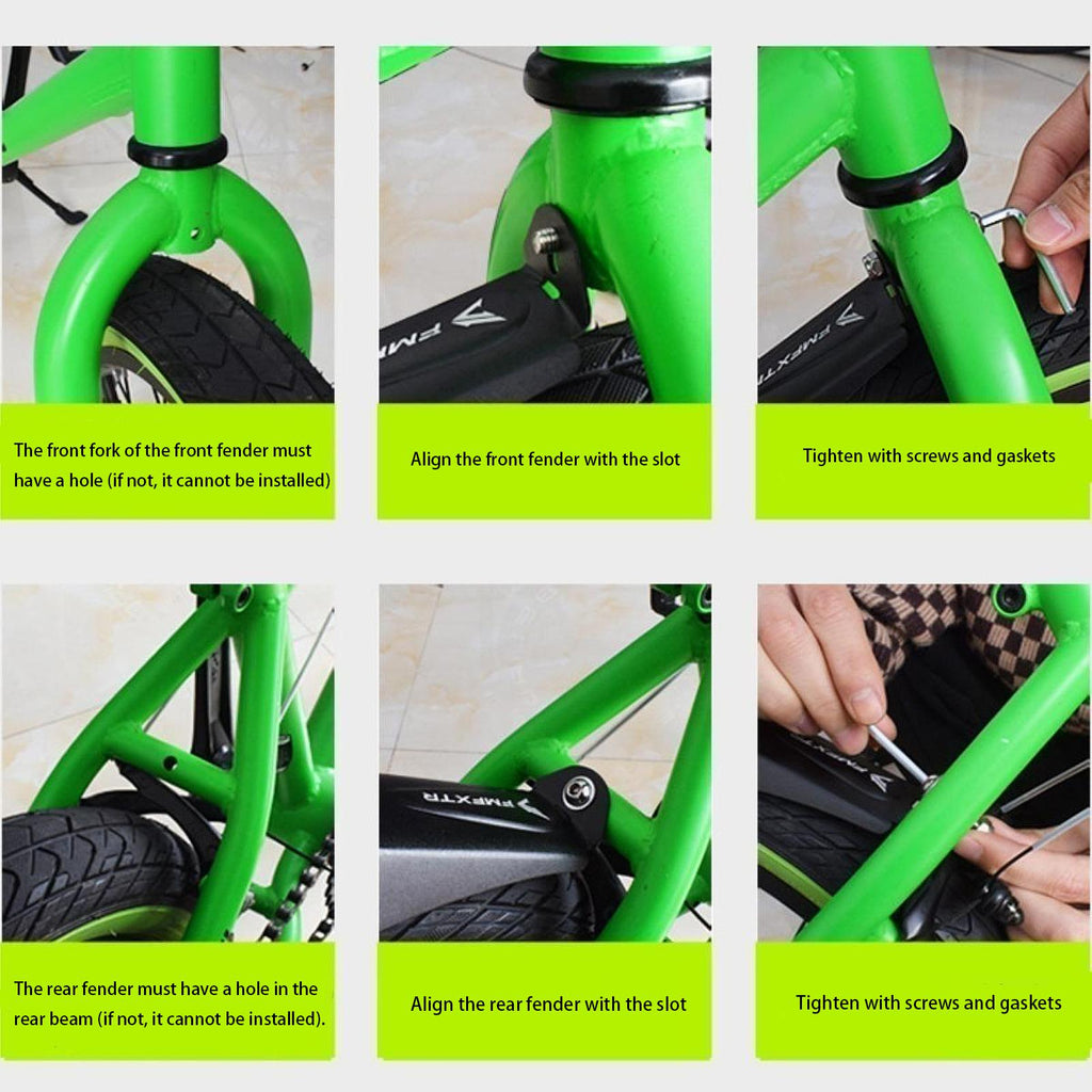 【Versatile Fit】: Designed to accommodate bicycles with wheel sizes ranging from 14 to 20 inches, these front and rear fenders offer a universal fit for various bike models