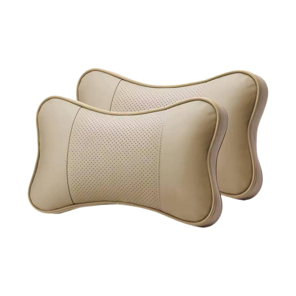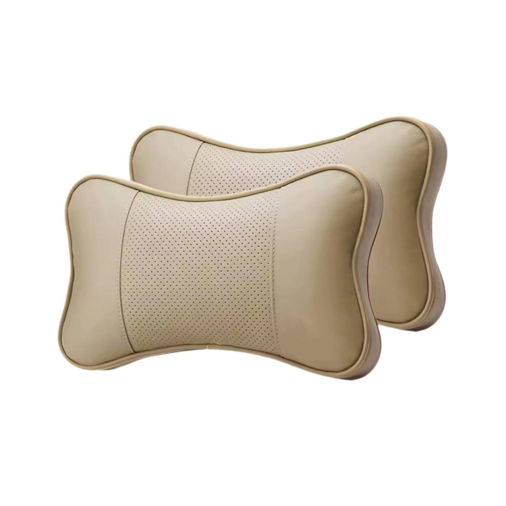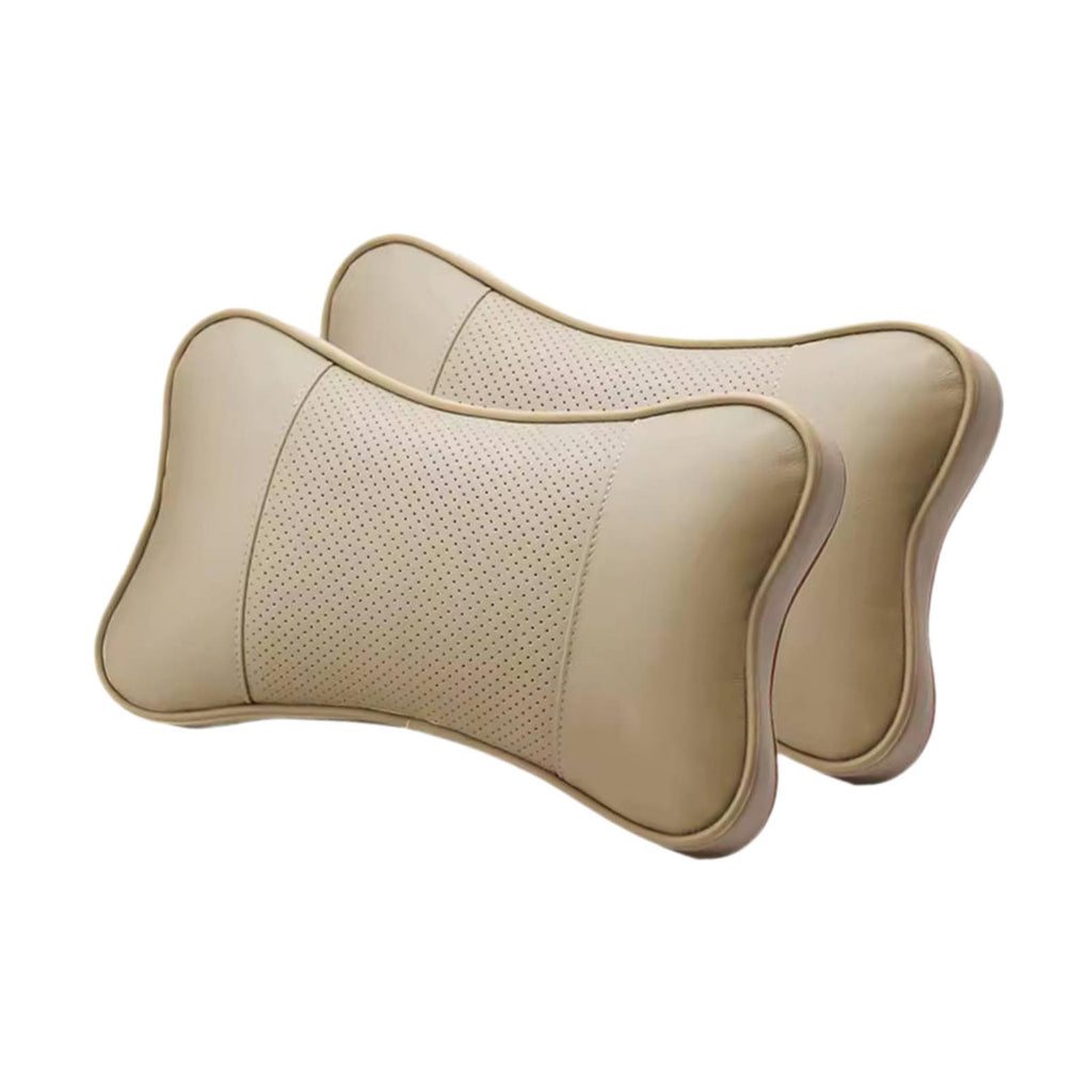 Maxbell 2Pcs Car Neck Pillow Head Rest Driving Travel Easy Installation Neck Support Beige