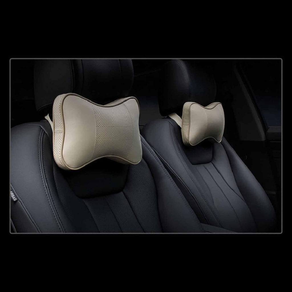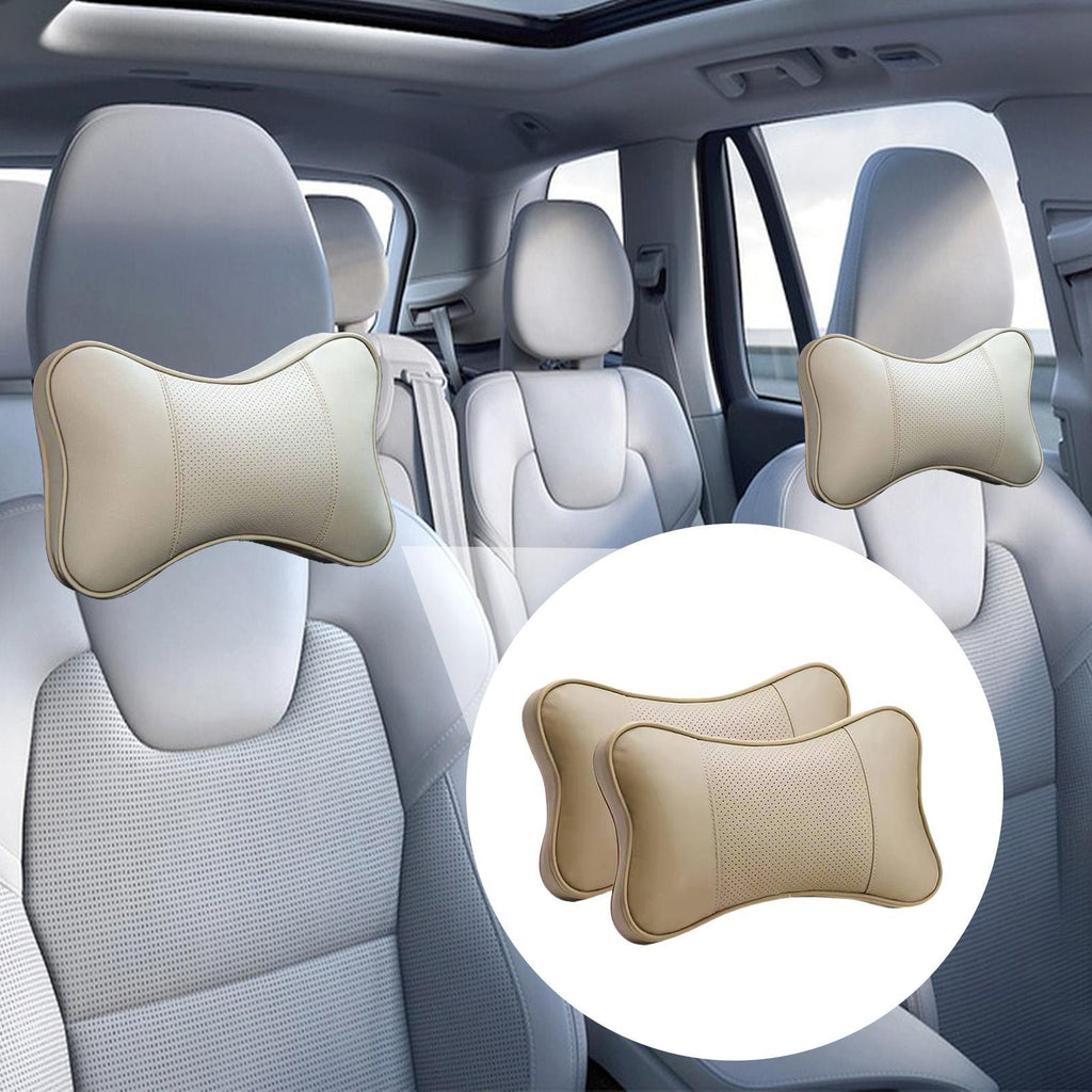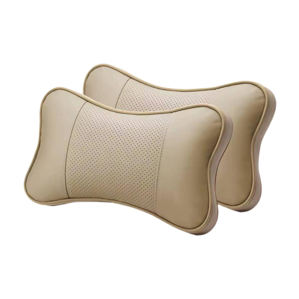 Maxbell 2Pcs Car Neck Pillow Head Rest Driving Travel Easy Installation Neck Support Beige