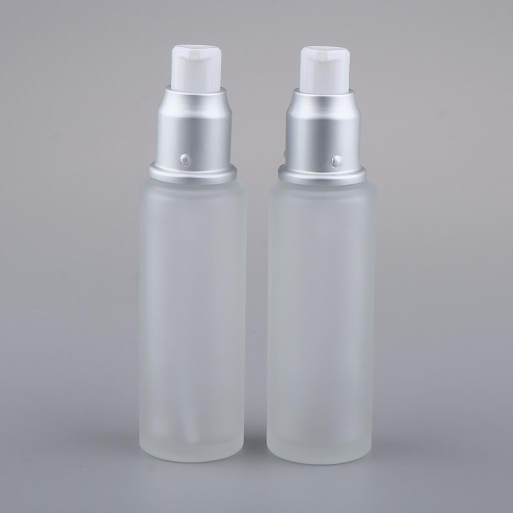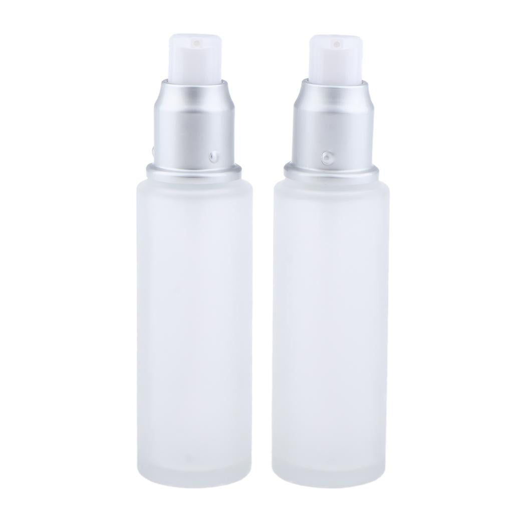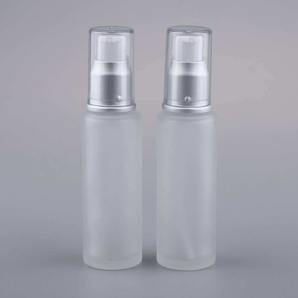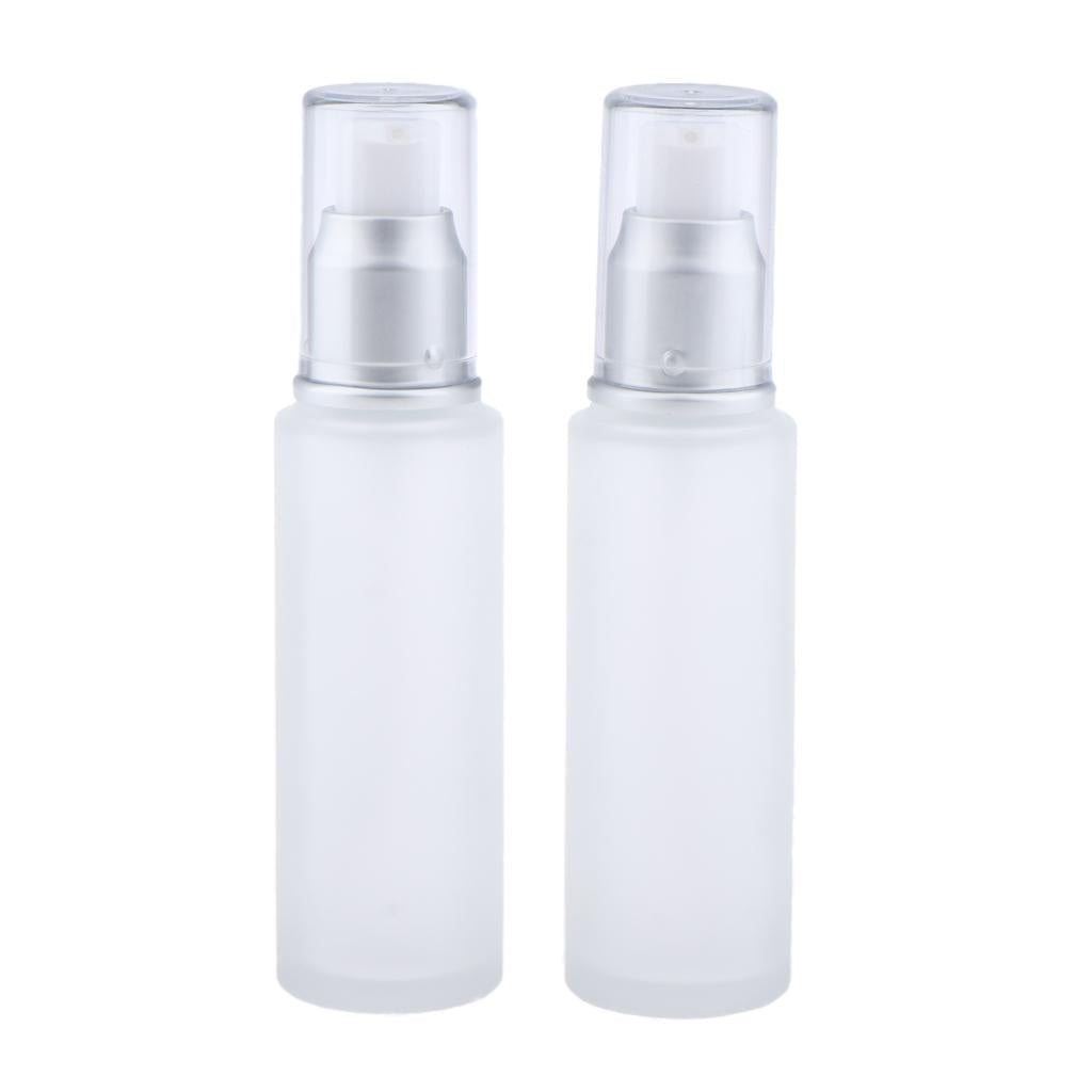 Max 2Pcs Empty Glass Bottles Cosmetic Makeup Travel Lotion Containers 50ml Pump