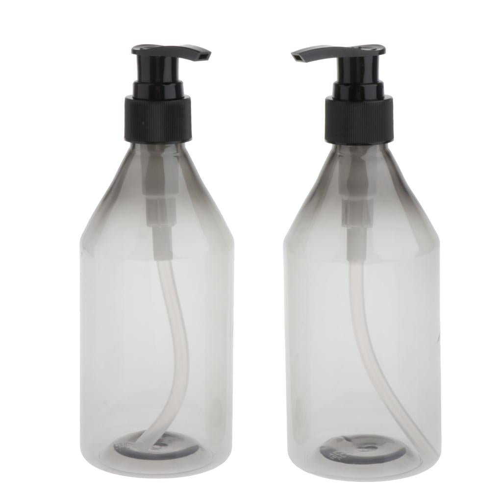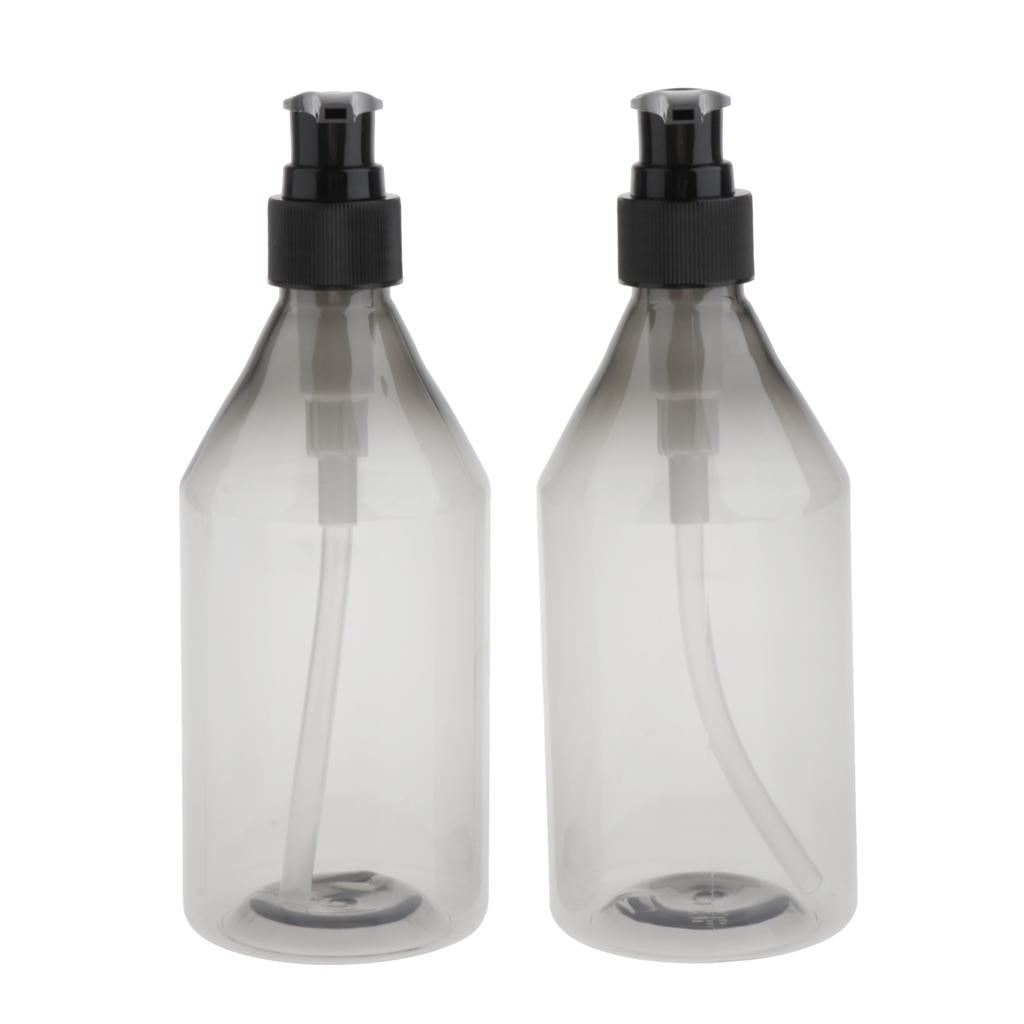 Maxbell 2x 300ml Pump Bottle Travel Shampoo Lotion Conditioner Dispenser Gray+Black