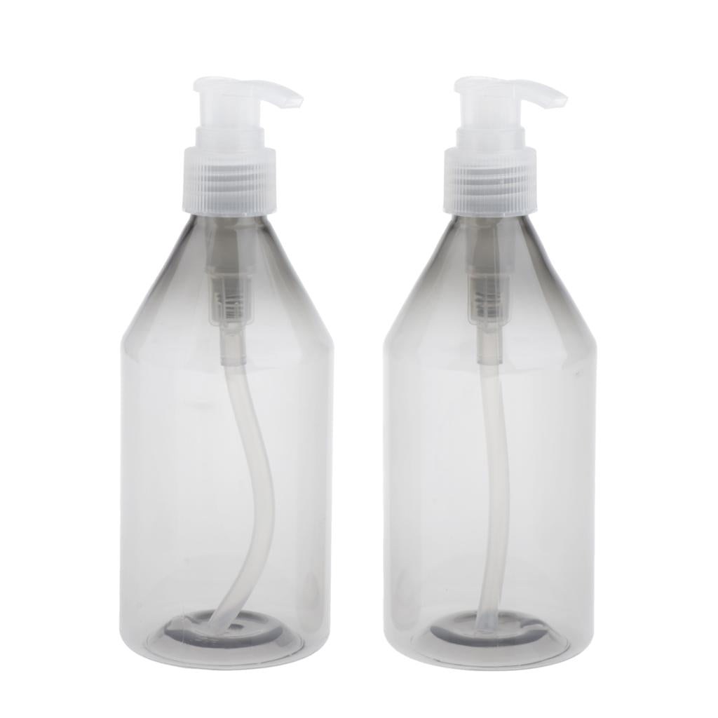 Maxbell 2x 300ml Pump Bottle Travel Shampoo Lotion Conditioner Dispenser Gray+Clear