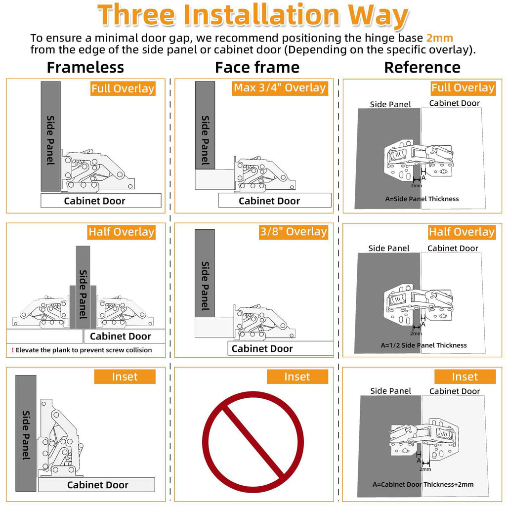 【Easy Installation】: These RV cabinet hinges are easy to install. Reinforced screw holes ensure a secure connection to both framed and frameless cabinets, making them ideal for heavy doors. For safety, it is recommended to wear gloves during installation due to the strong spring tension