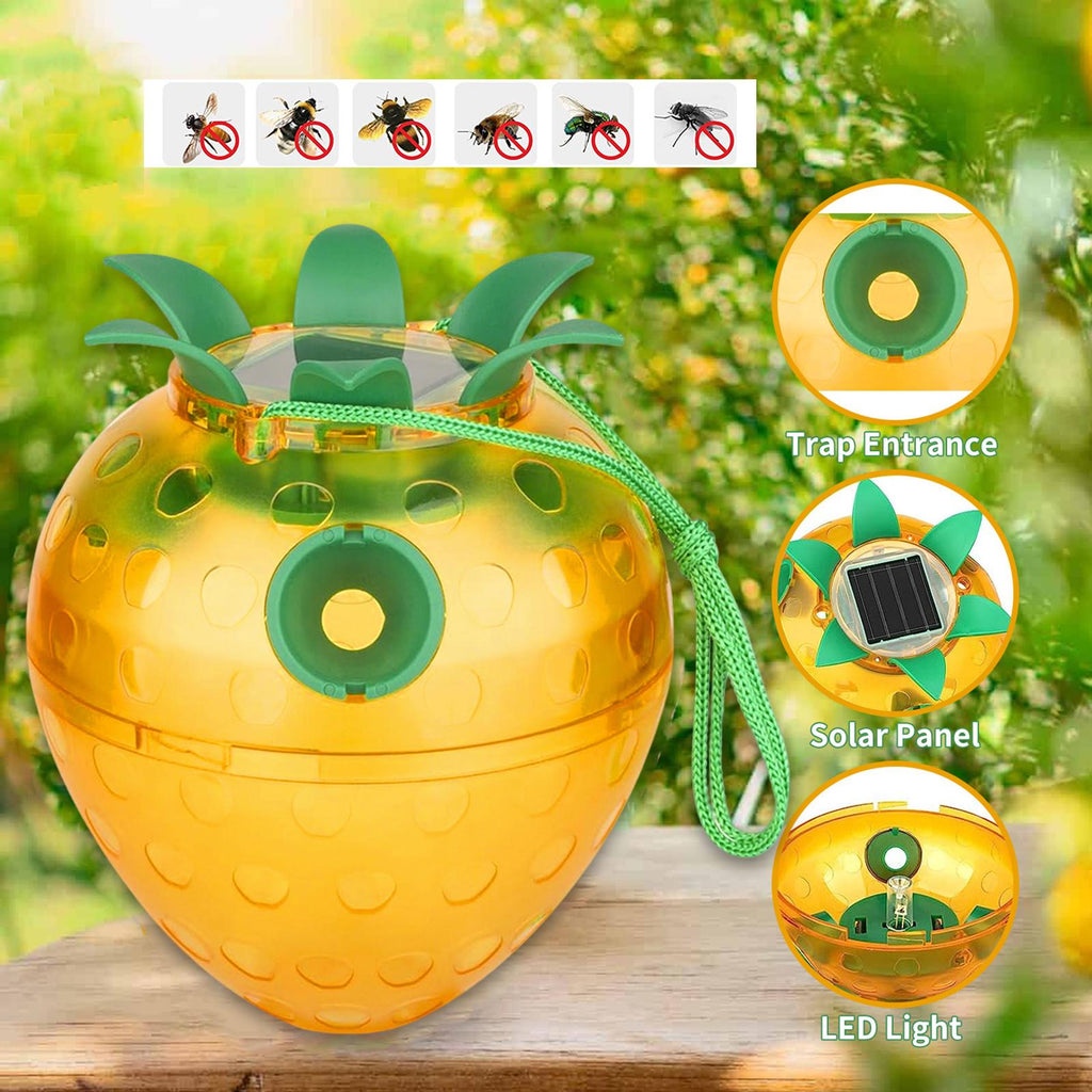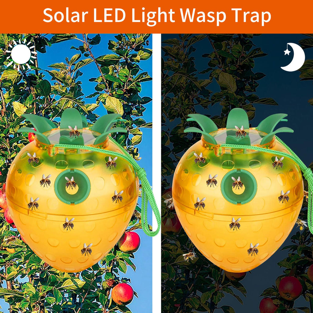 - 【SOLAR POWERED NIGHT GLOW】: Equipped with a built in solar panel, these wasp traps automatically store power during the day and emits a soft, ambient light at night. This not only attracts more after dark but also adds a charming decorative touch to your garden or patio