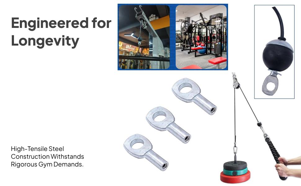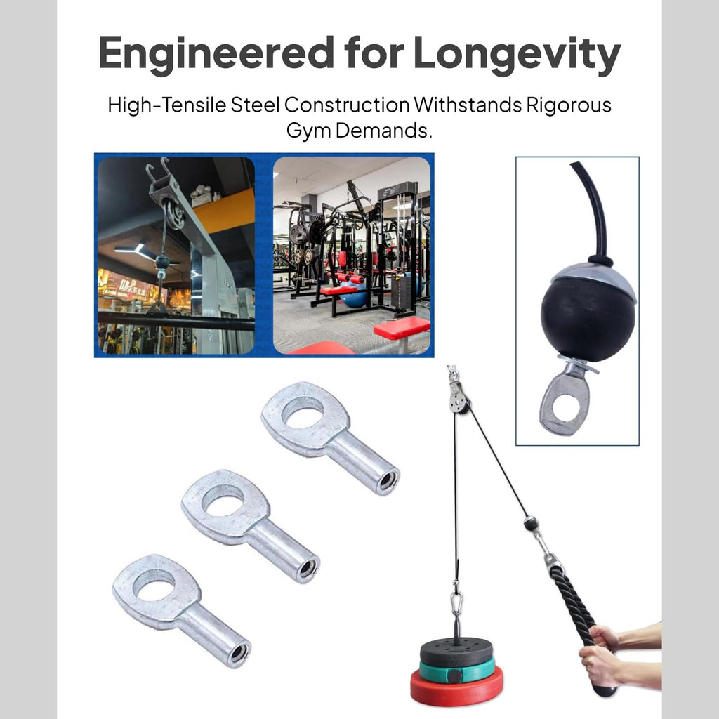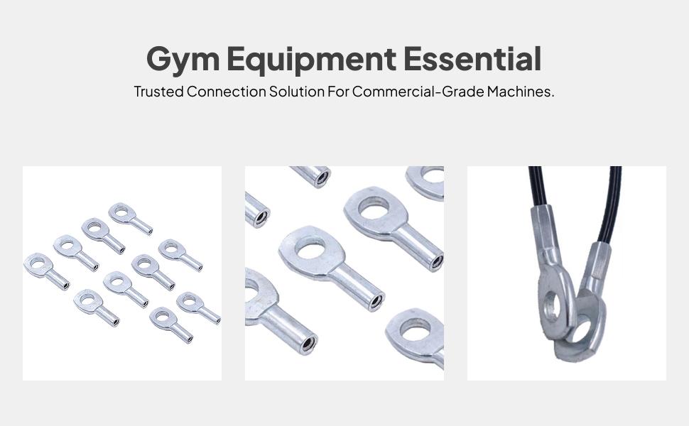 Convenient and practical terminal eye attachment accessories for exercise machines and fitness steel wire rope.