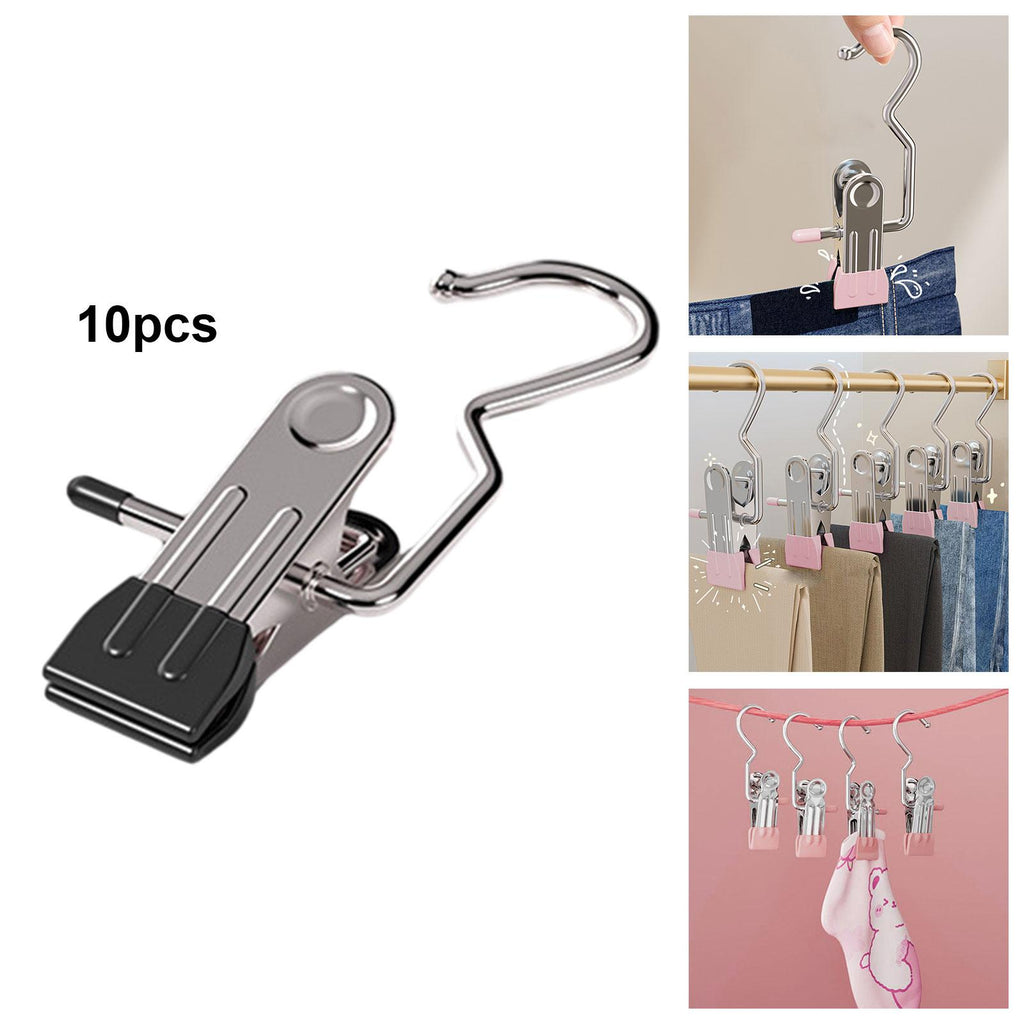 【Multifunctional Hanger Clip】: The stainless steel hanger clip is suitable for organizing coats, casual pants, jeans, skirts, boots, underwear, hats, handbags, socks, photos, towels, etc. The items to be dried can be hung anywhere, travel, dormitory, indoor or outdoor.