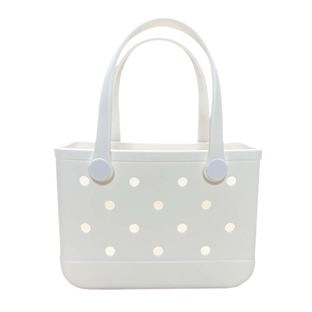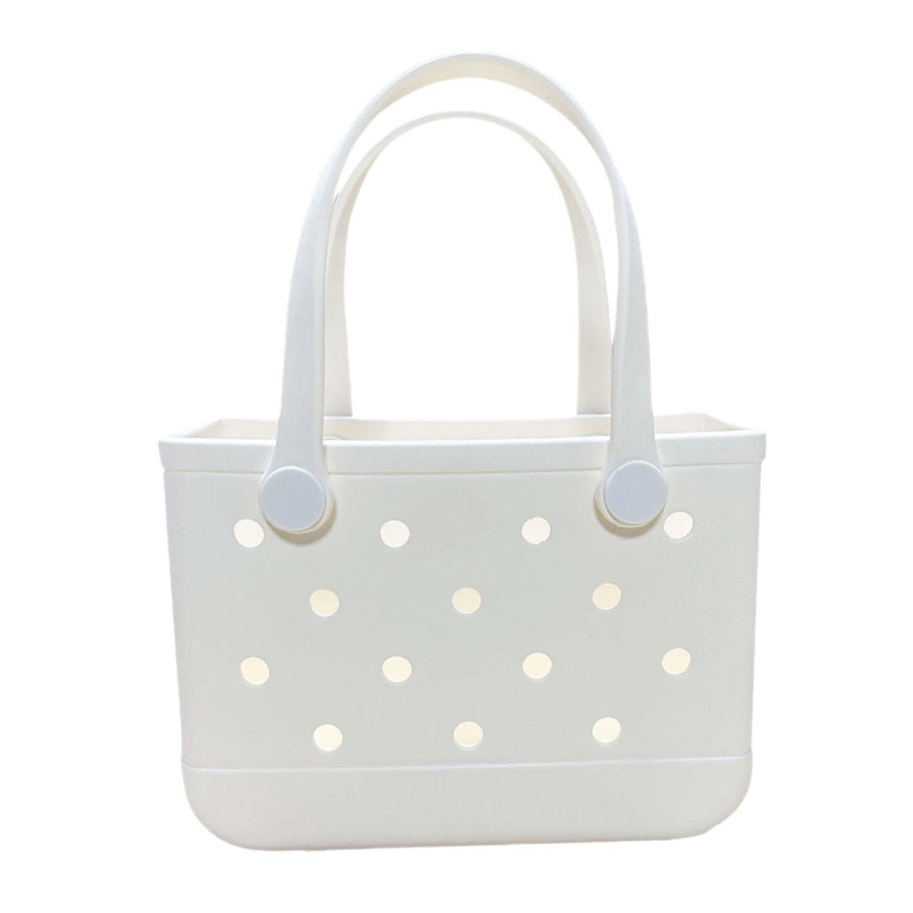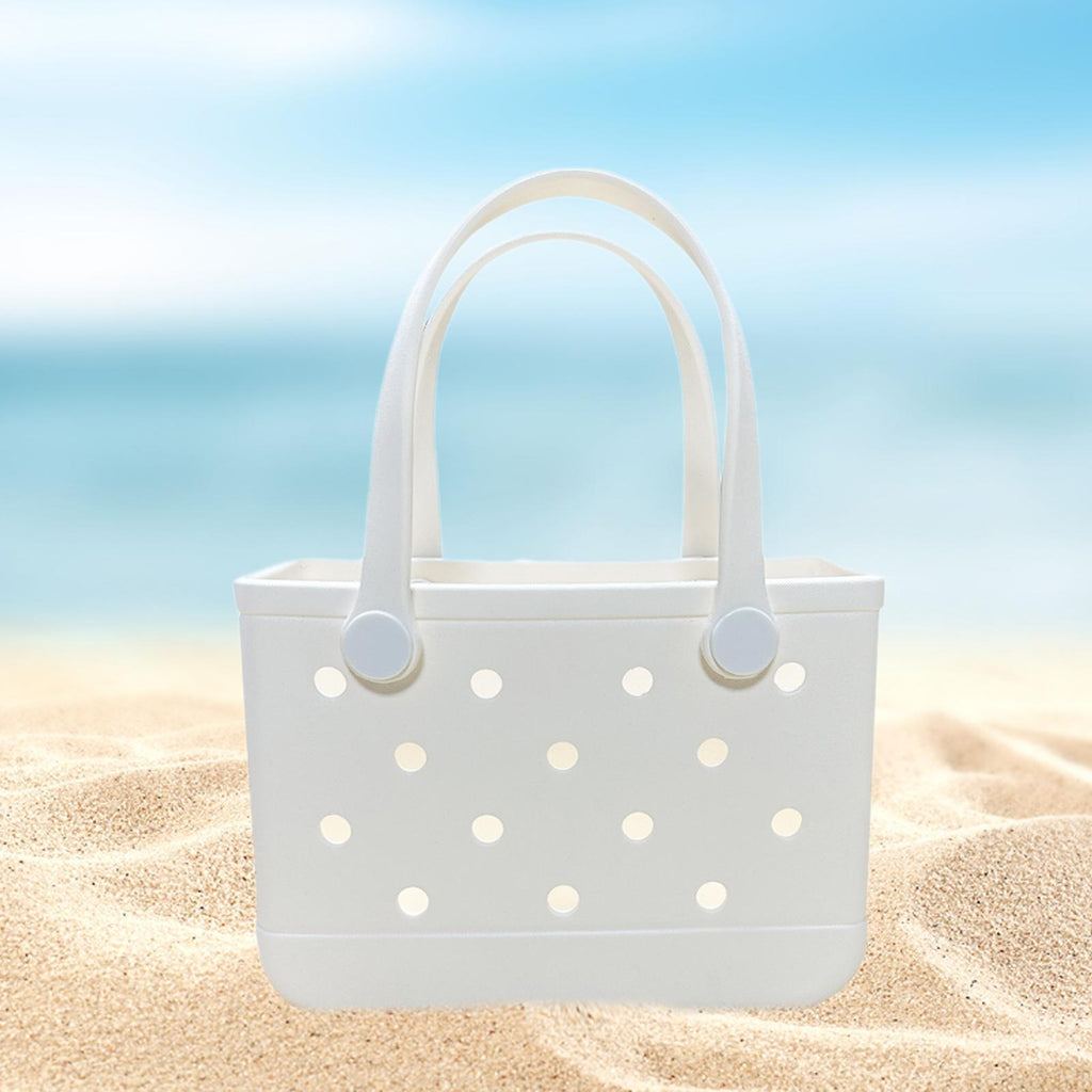 Maxbell 2xBeach Tote Bag Handbag Washable Hole Beach Handbag for Shopping Outdoor Boat White