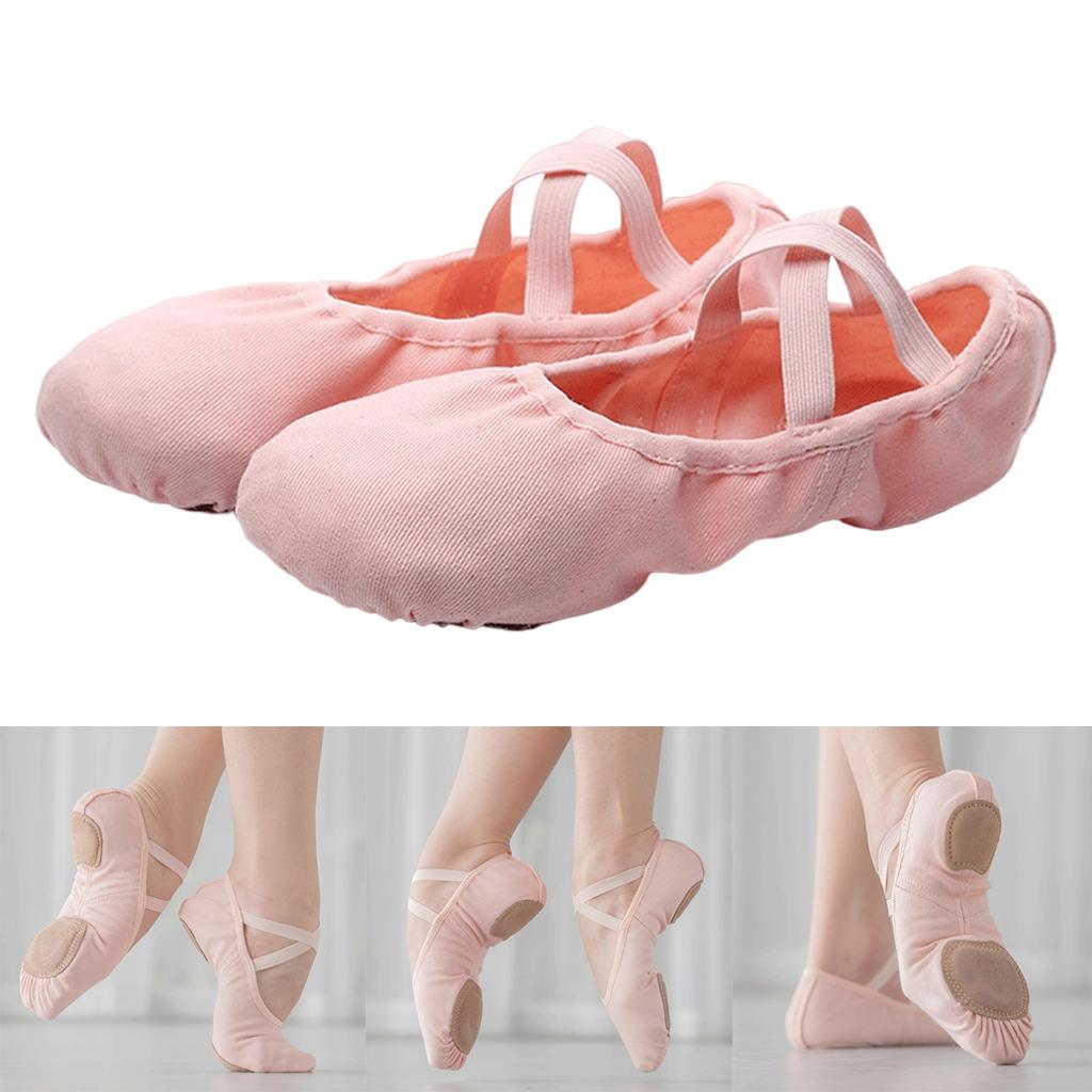 Maxbell 2xCanvas Ballet Slipper Split-Sole Shoes Fitness Gymnastics Flats Pink_36