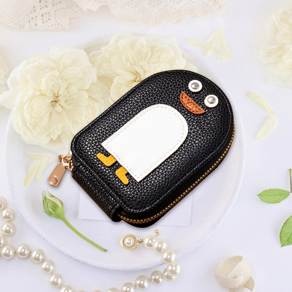 【High Capacity】With ample space and roomy compartments, the multifunctional cute penguin PU credit card purse can hold your credit cards, bills, business cards, and ID cards.