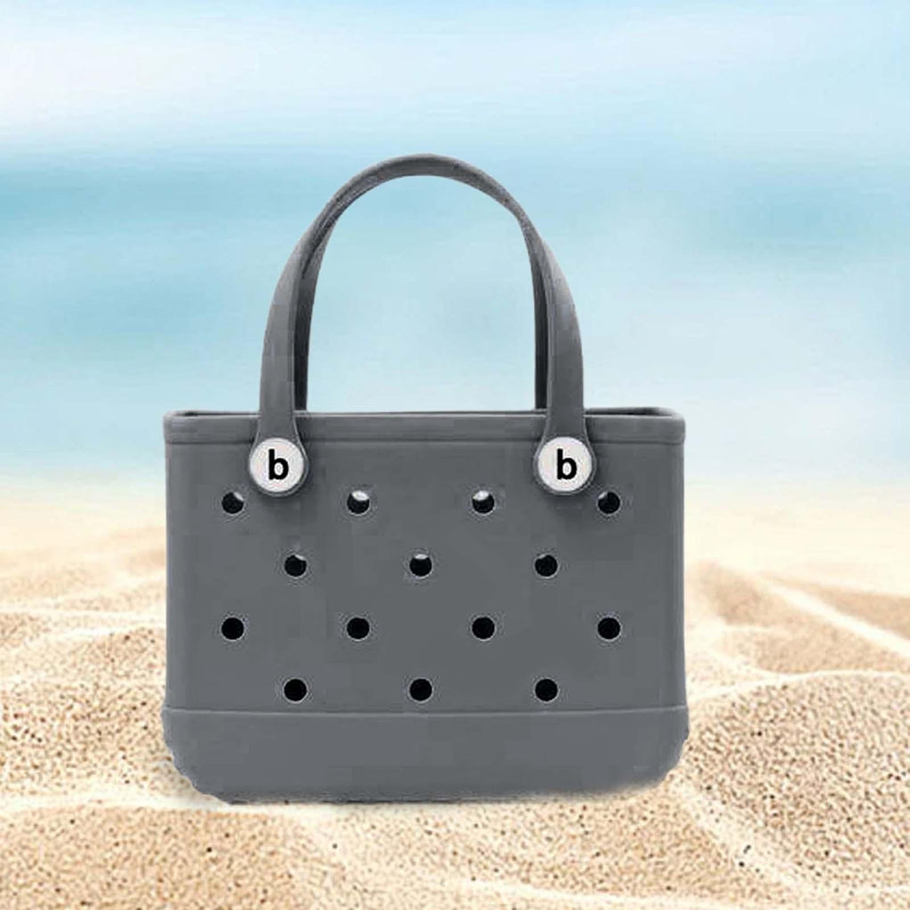 Maxbell 2xHole Bag Waterproof Washable Fashion Open Tote Bag for Shopping Travel Beach Gray
