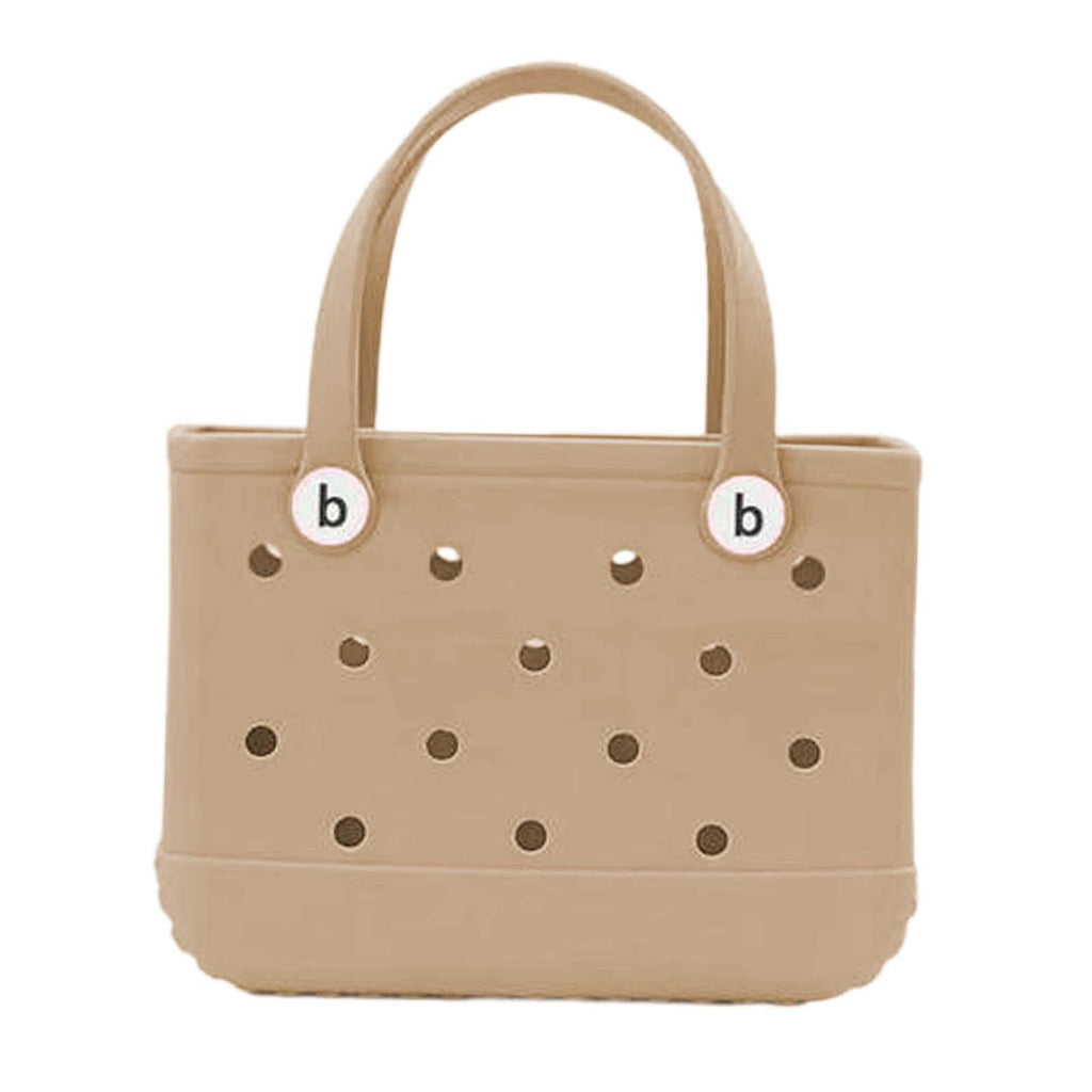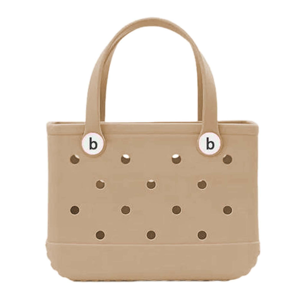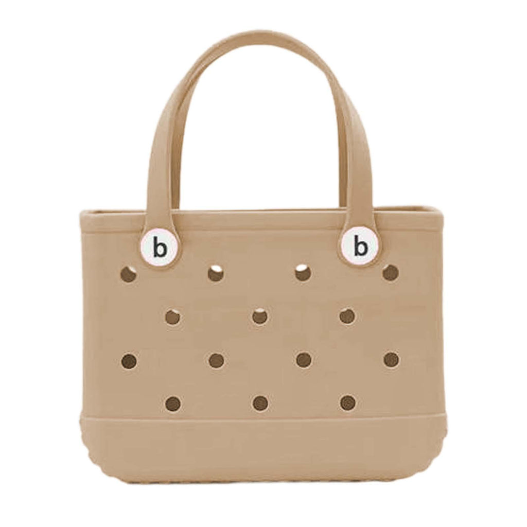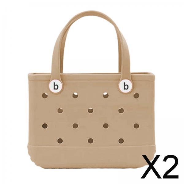 Maxbell 2xHole Bag Waterproof Washable Fashion Open Tote Bag for Shopping Travel Beach Khaki