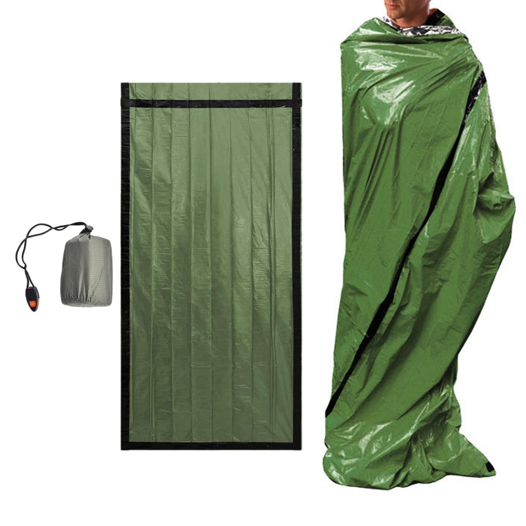 Maxbell 2xOutdoor Camping Thermal Sleeping Bag Emergency Survival Blanket Green + Bag