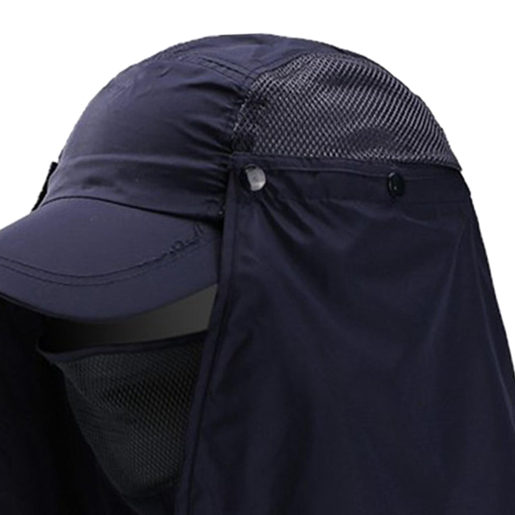 Maxbell 2xOutdoor Hiking Hat with Removable Face Neck Flap Cover Breathable for Garden Dark Blue