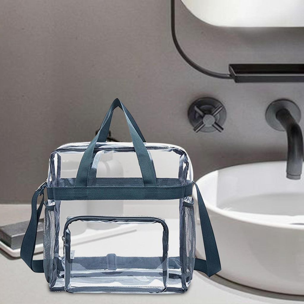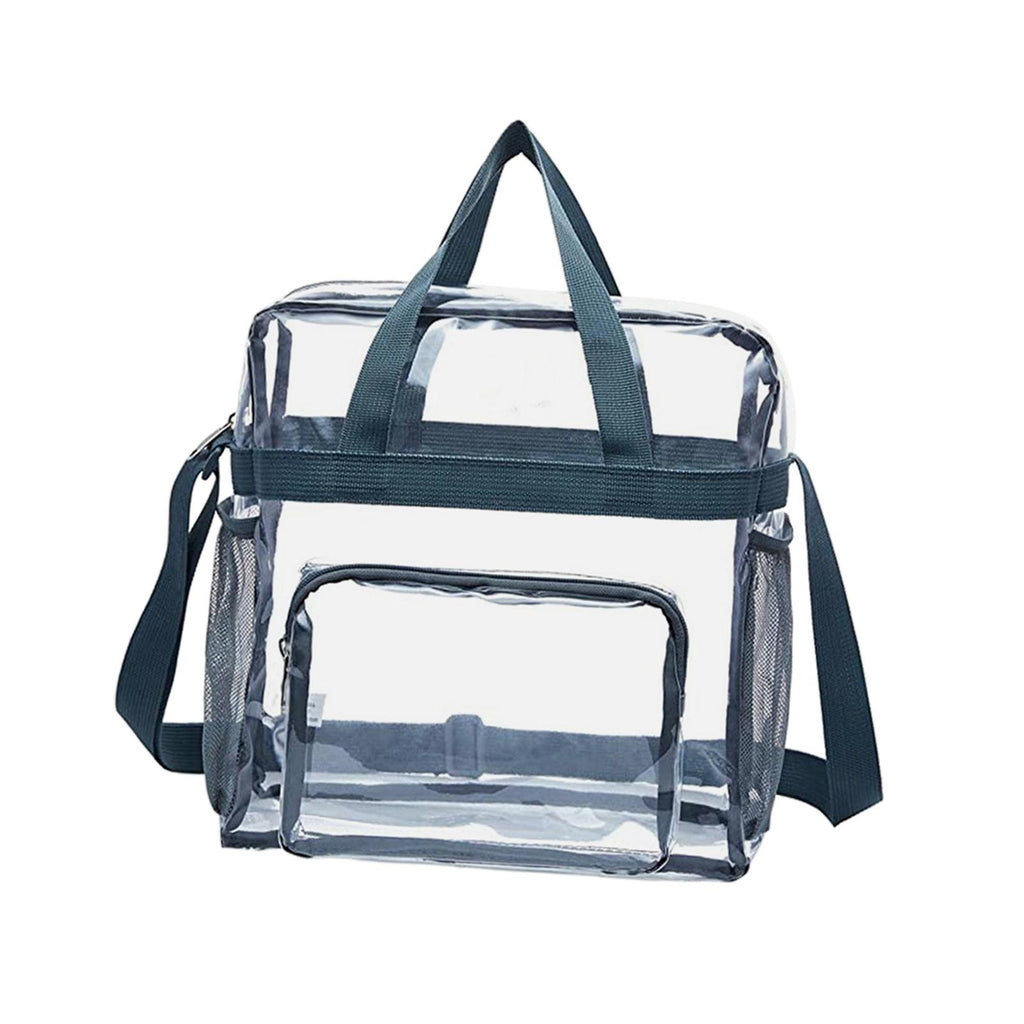 Clear Tote Bag: Fashion transparent shoulder bag is with 2 side mesh pockets and 1 front pocket, multifunctional, trendy and versatile.