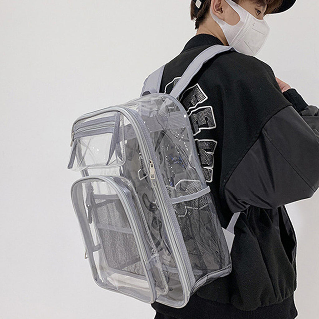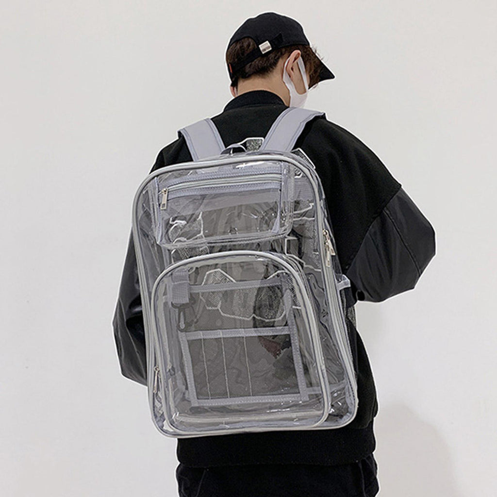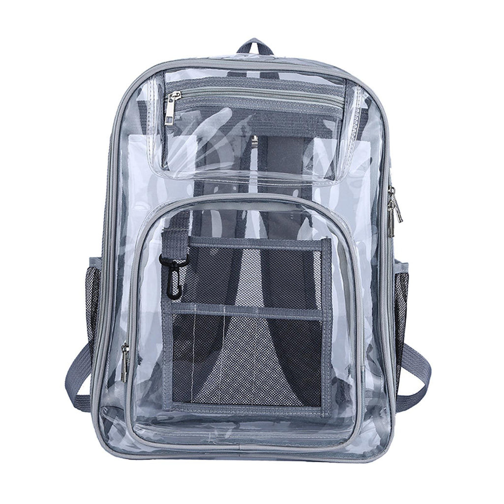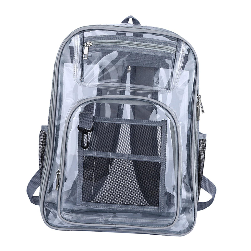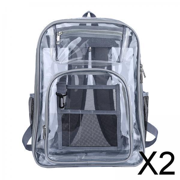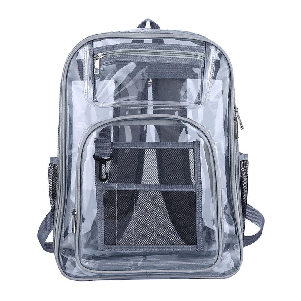Maxbell 2xTransparent Backpack 2 Way Zip Reinforced Strap Durable for Sports Men Grey