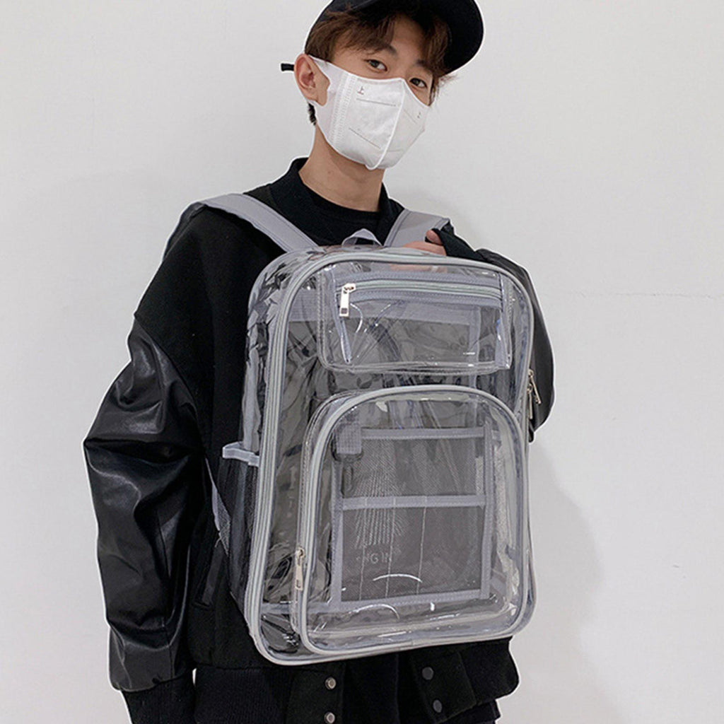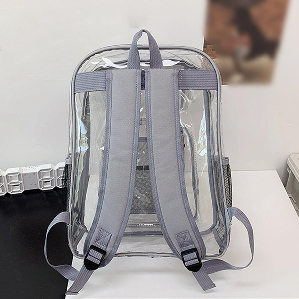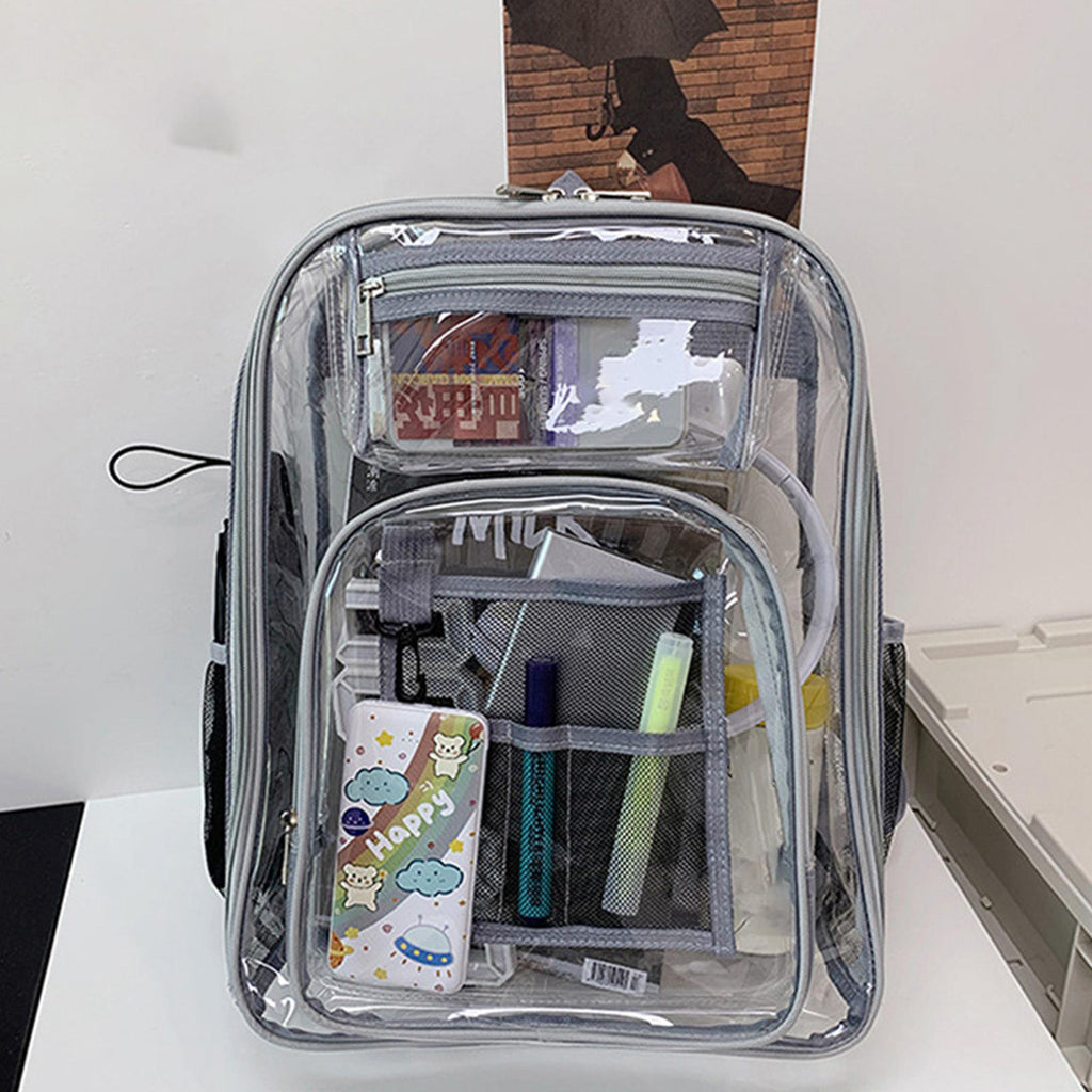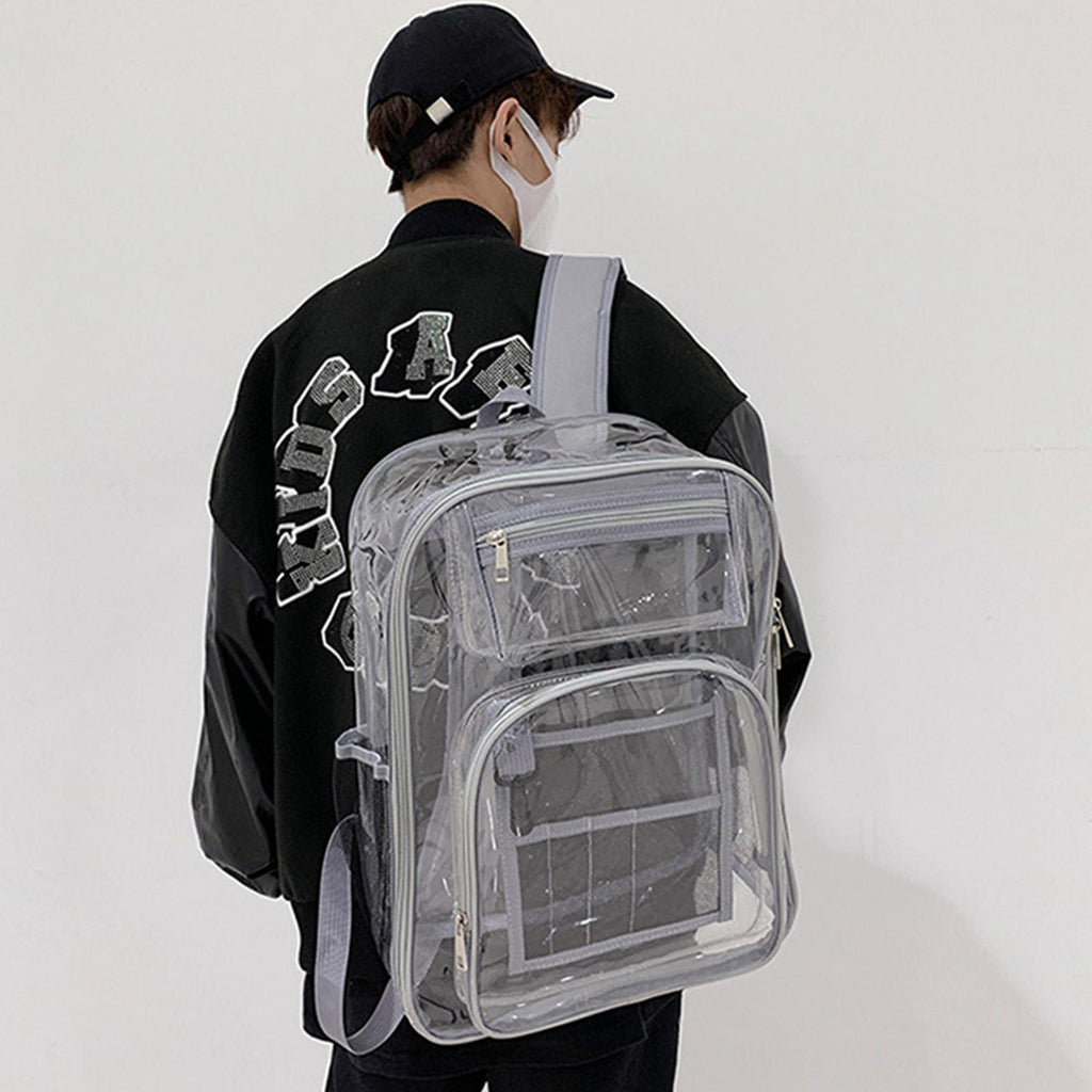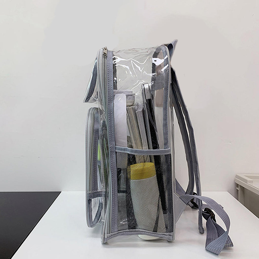 Maxbell 2xTransparent Backpack 2 Way Zip Reinforced Strap Durable for Sports Men Grey