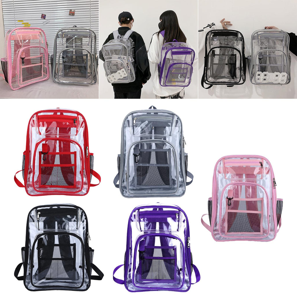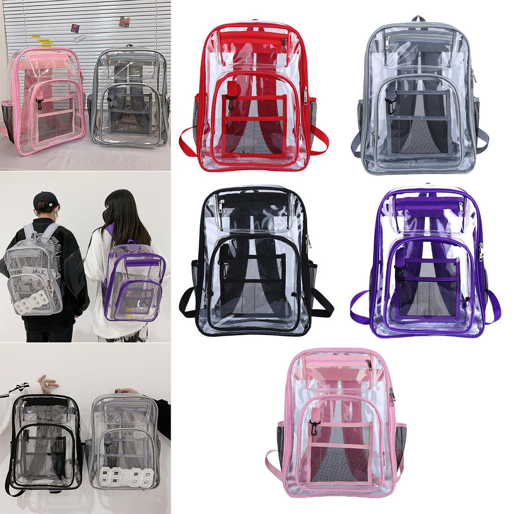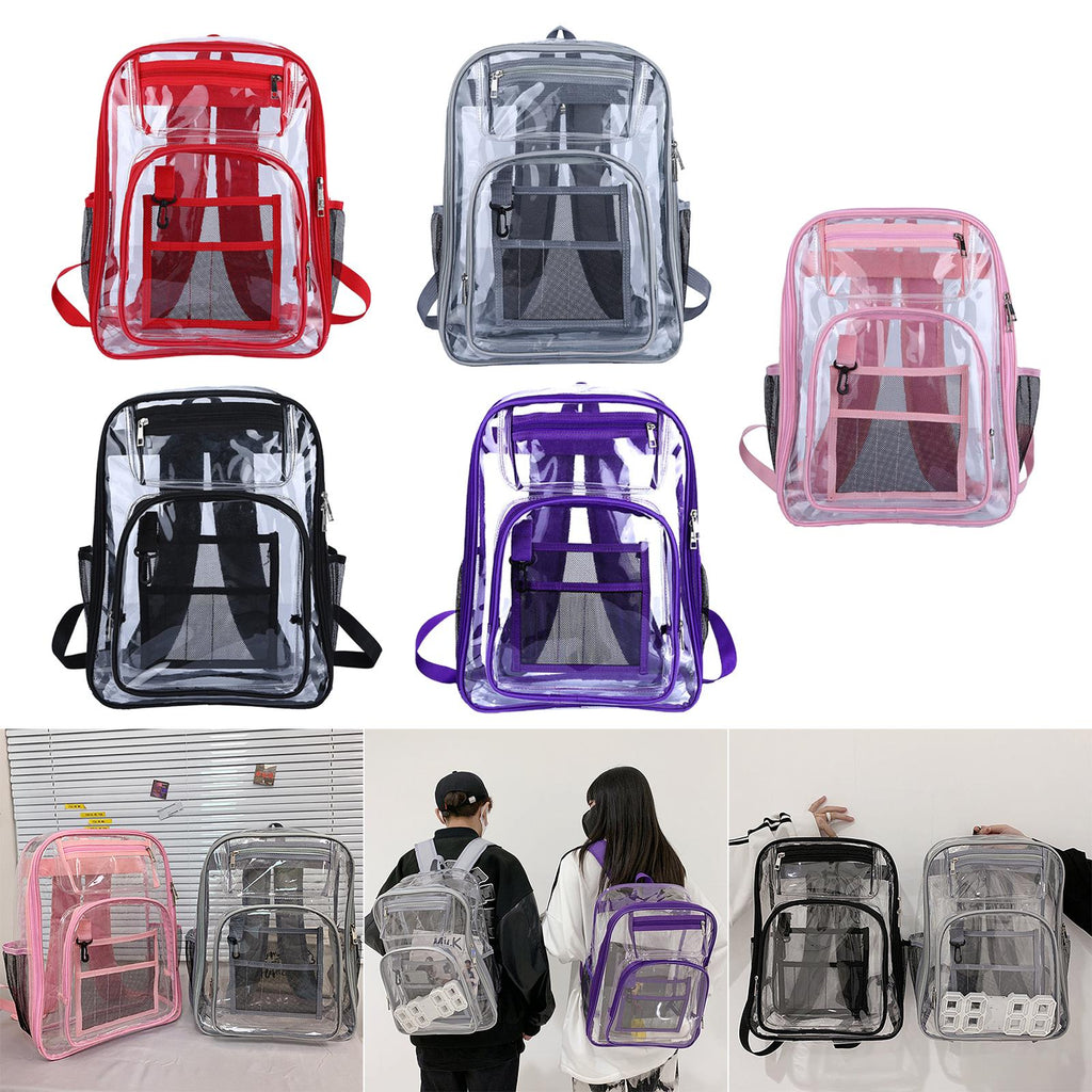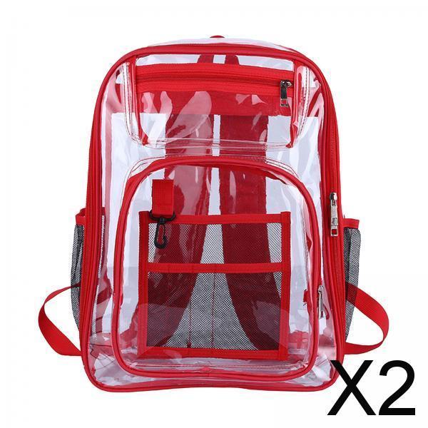 Maxbell 2xTransparent Backpack 2 Way Zip Reinforced Strap Durable for Sports Men Red