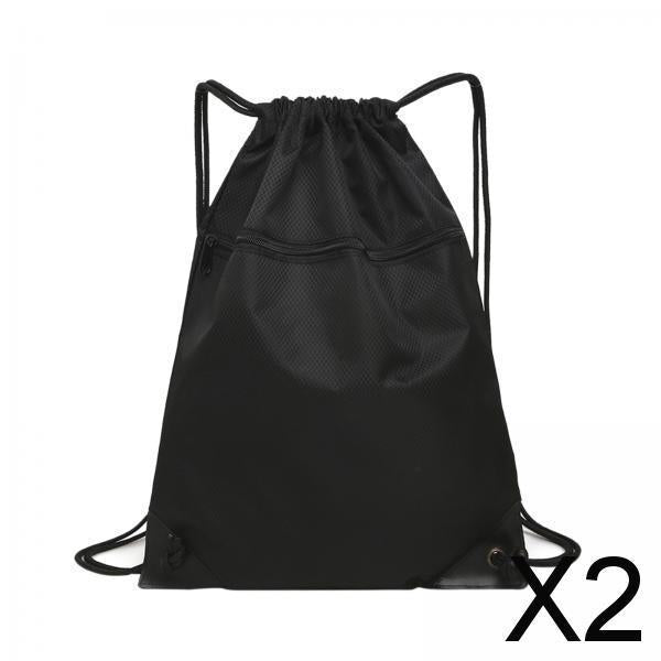 Maxbell 2xTravel Nylon Drawstring Bag Sack Beach Gym Backpack Shoes Bags Black
