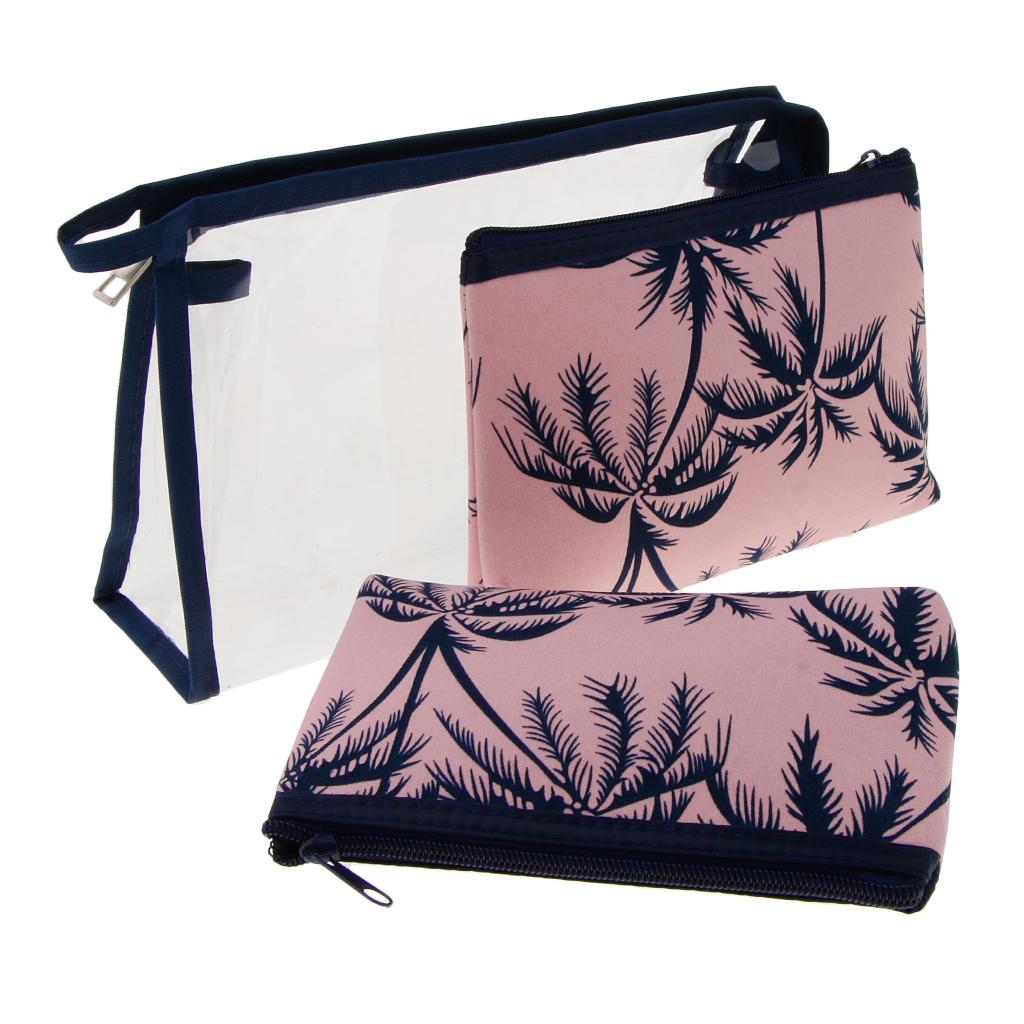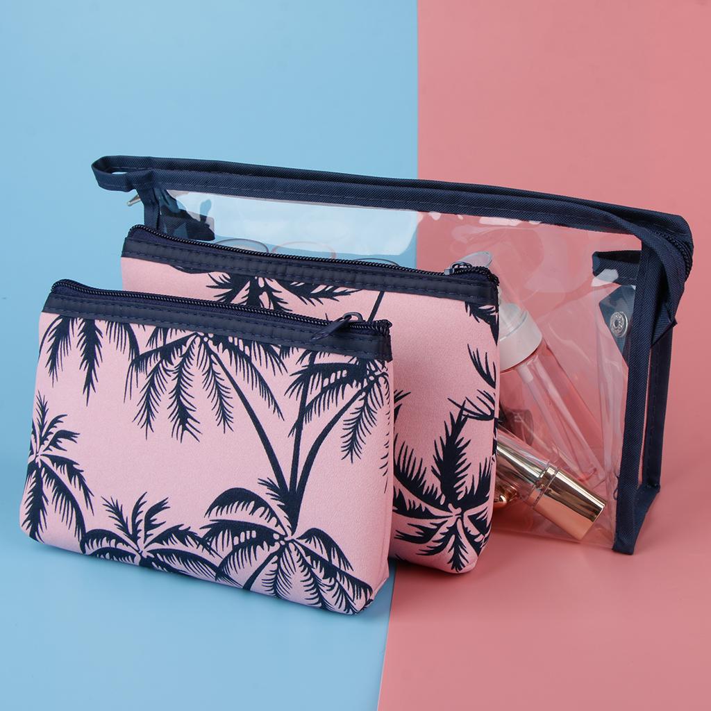 1 Set 3 in 1 Cosmetic Bag (1 piece large clear bag, 1 piece medium coconut tree bag, 1 piece small coconut tree bag)