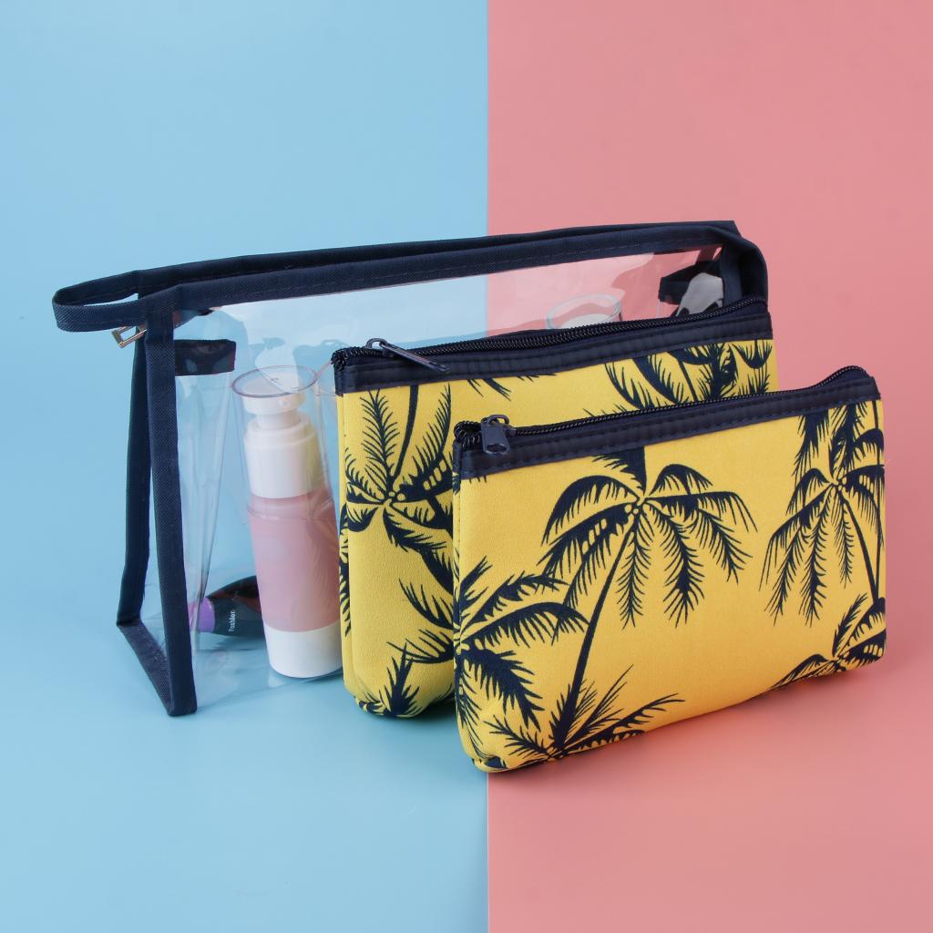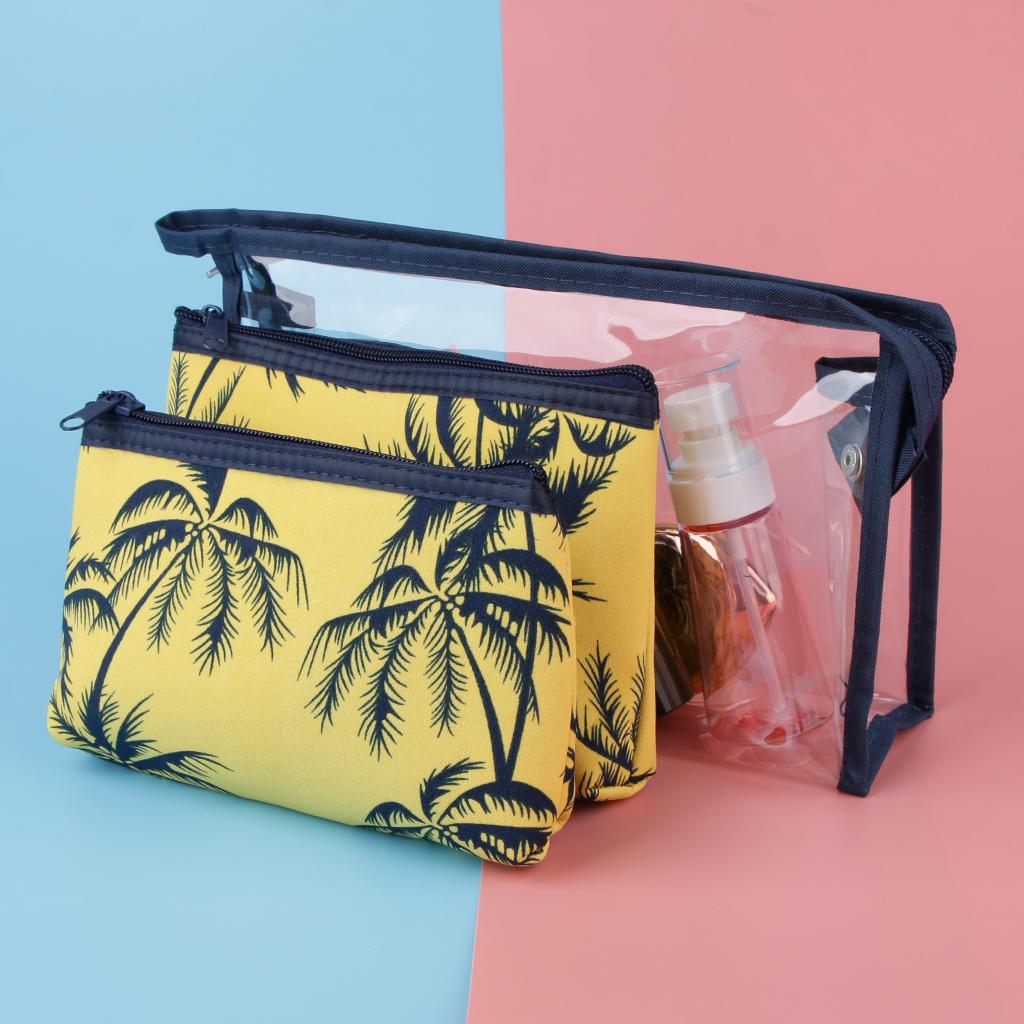 1 Set 3 in 1 Cosmetic Bag (1 piece large clear bag, 1 piece medium coconut tree bag, 1 piece small coconut tree bag)