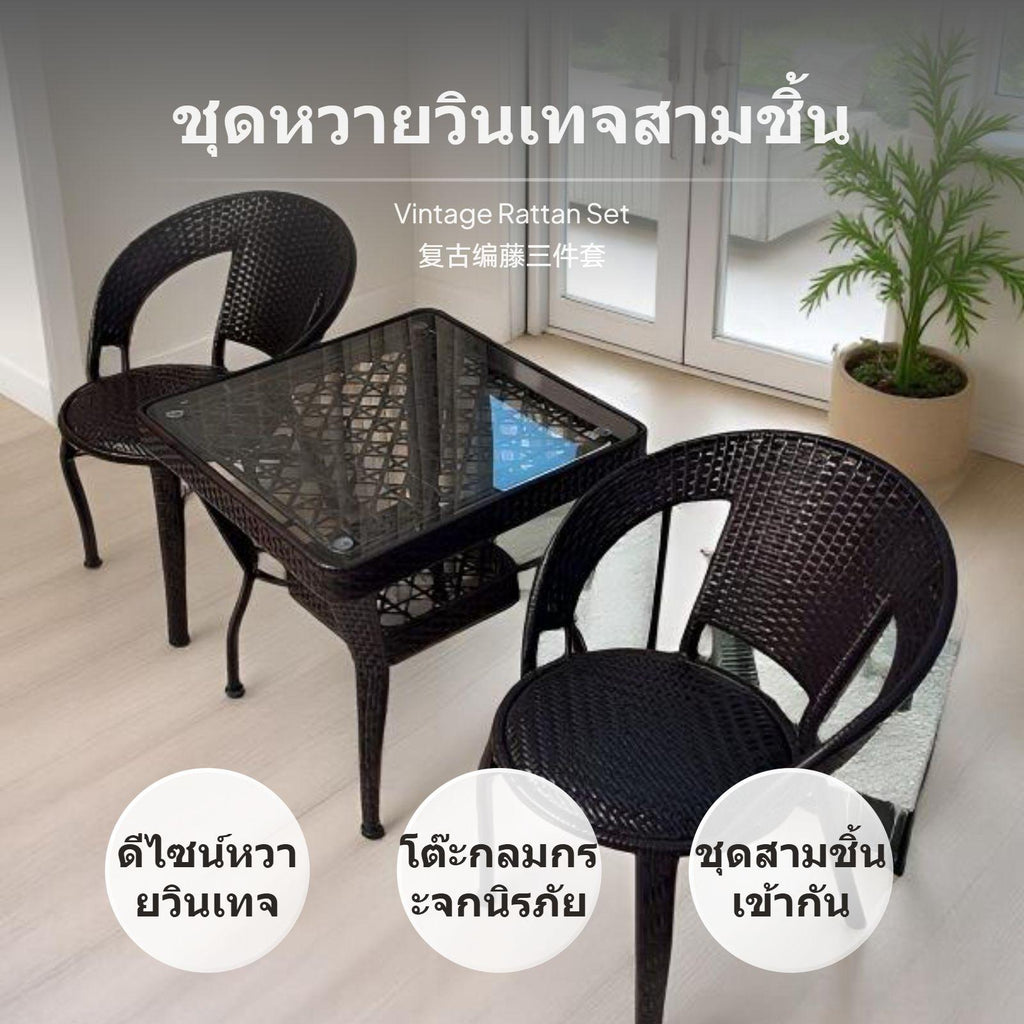 [Multi-purpose Relaxation Set] This 3-piece PE rattan furniture set includes two comfortable chairs and a glass-top coffee table, perfect for patio, balcony, garden, or indoor lounge.[Instant Use Convenience] Designed for immediate enjoyment, this set requires no assembly—simply open the box to enhance your relaxation zone.[Quality Materials & Easy Maintenance] Feature robust metal frame, weather-resistant rattan weave, and polished tempered glass surface, all easy to clean and suitable for both indoor and outdoor settings.[Added Storage Functionality] The coffee table’s lower shelf offers convenient space for books, tea sets, or decor essentials, keeping your area organized.[Elegant design for Any Space] Sophisticated black-brown rattan and timeless design fusion country and modern appeal, fitting seamlessly with a variety of home décors—from garden parties to quiet afternoon teas.Specification: