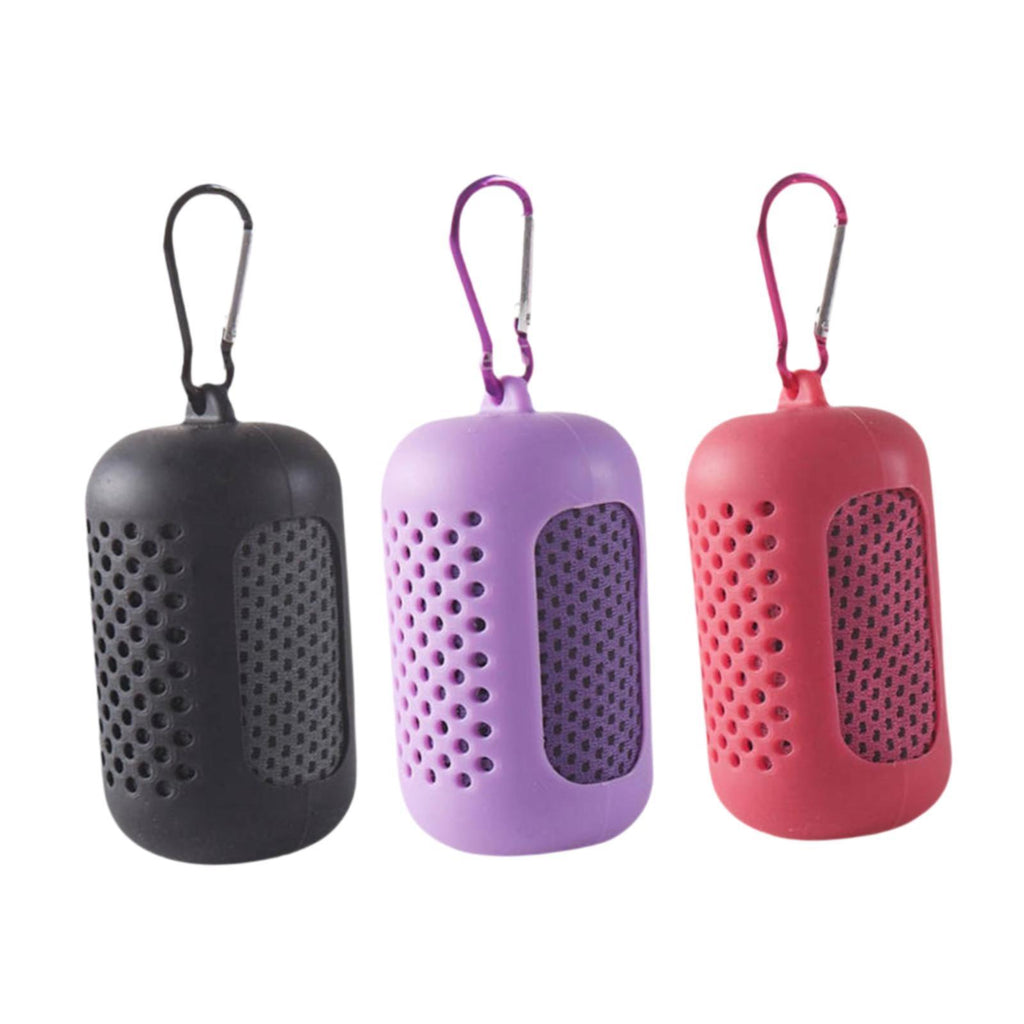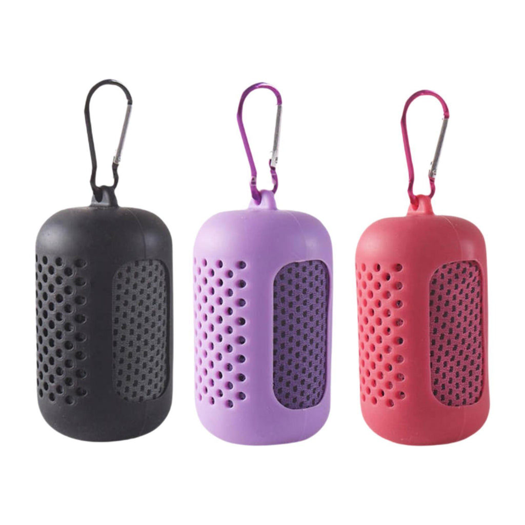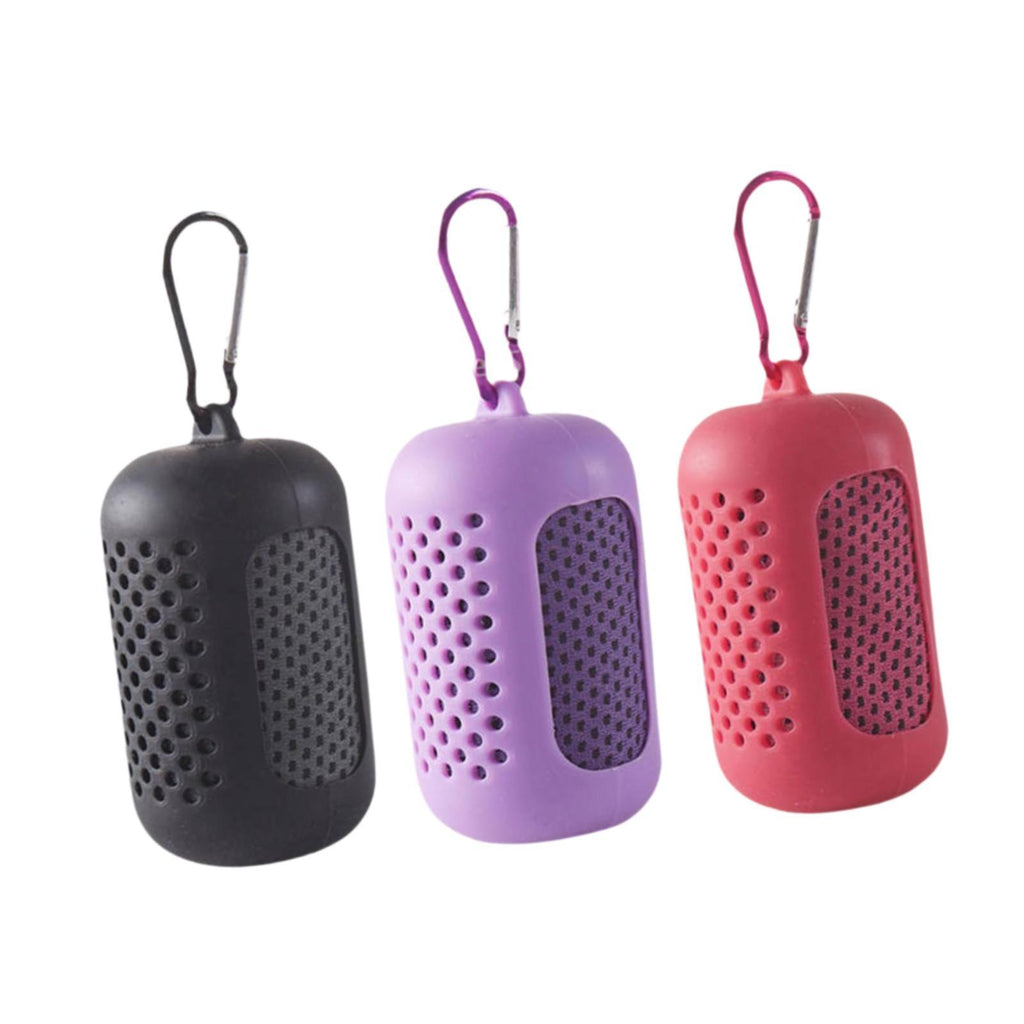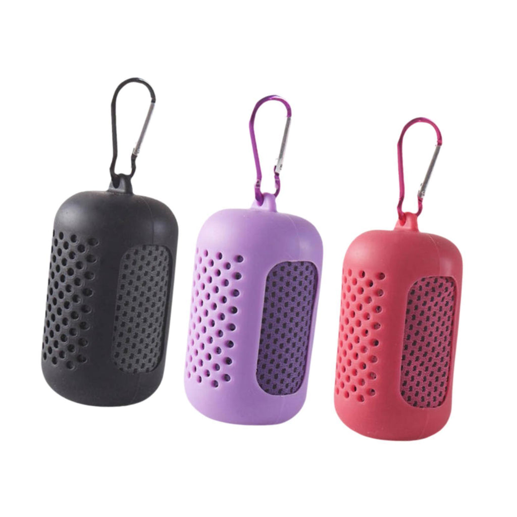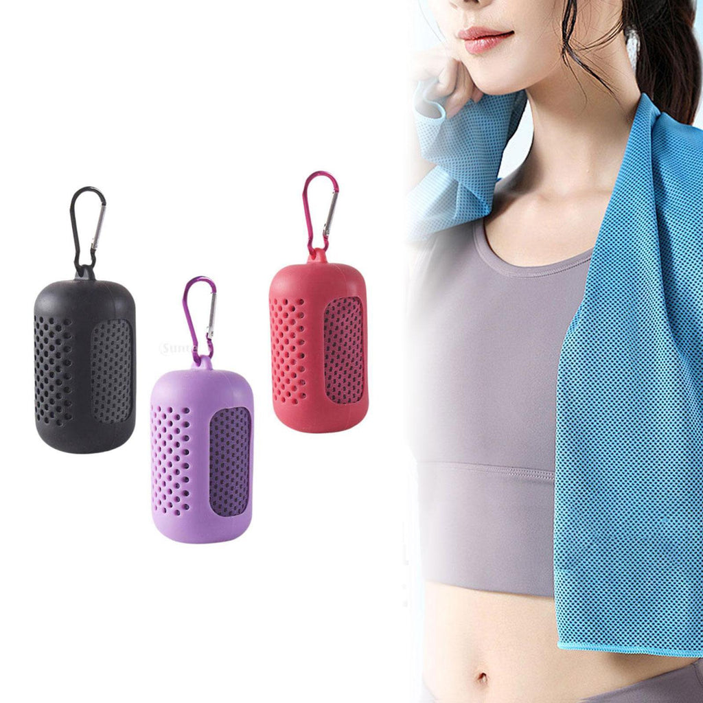 【Light and Portable】: Perfectly for hot weather conditions, each 30cmx90cm/11.81inchx35.43inch cooling towel is crafted from lightweight breathable fabric that won't weigh you down during exercise. Packaged individually in silicone cases with breathable holes and drainage features, they come with a sturdy carabiner clip for easy attachment to gym bags or backpacks