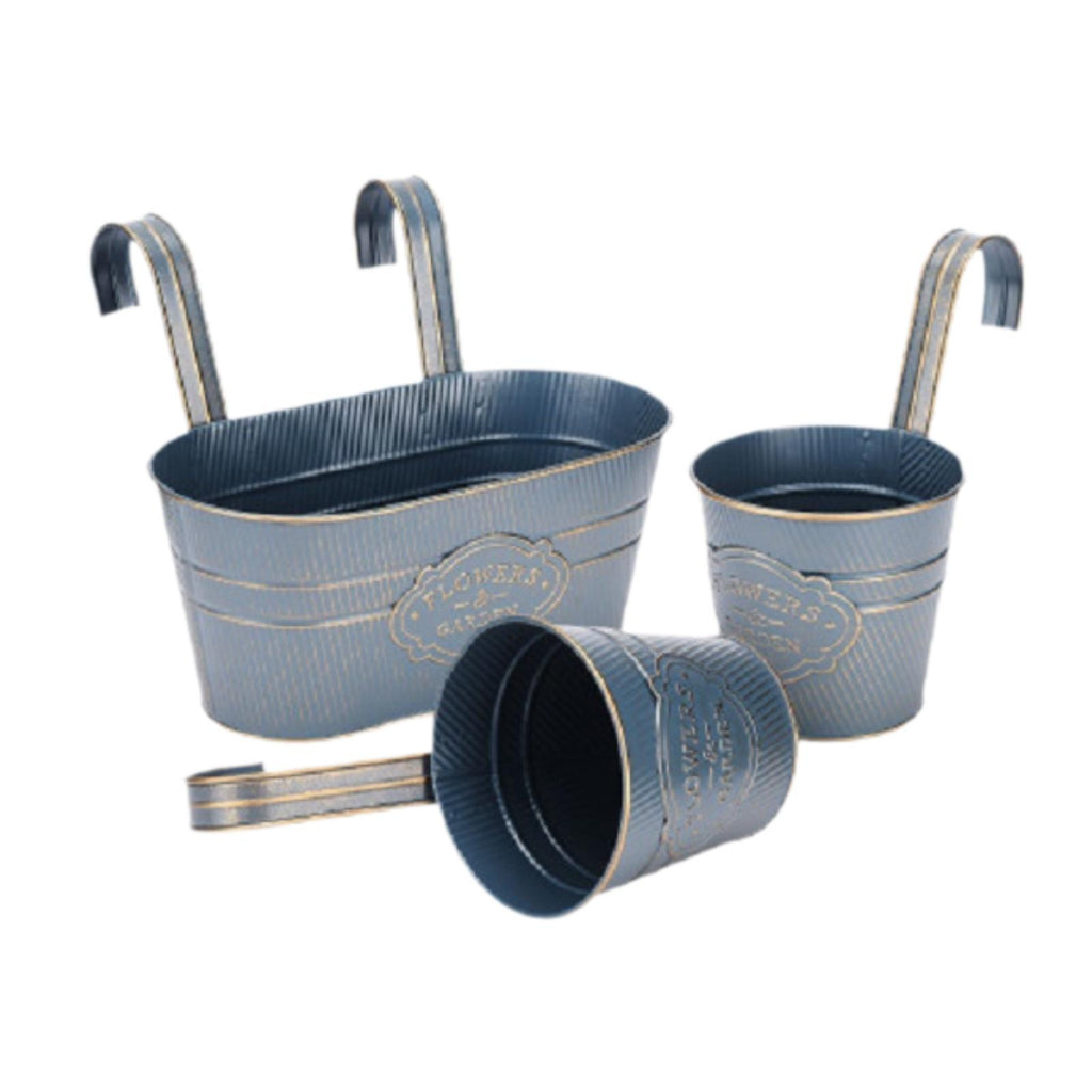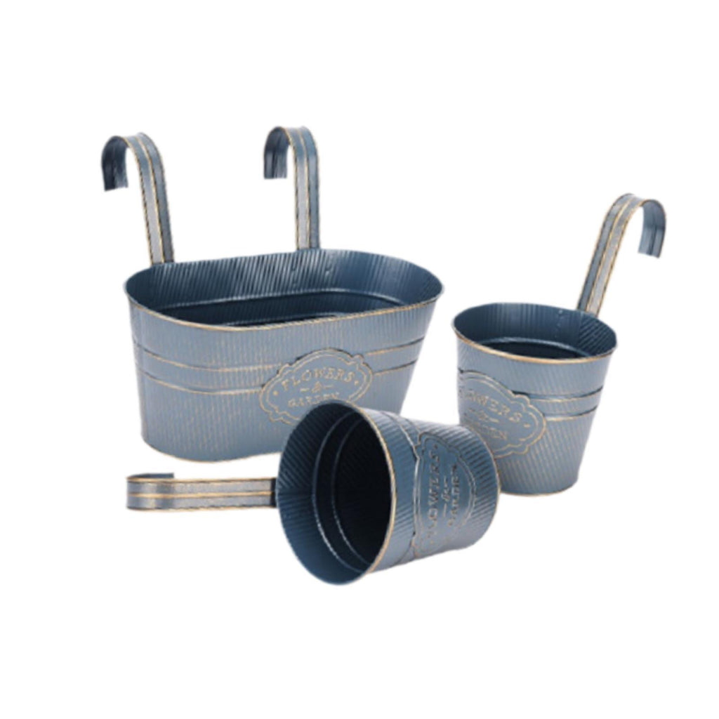 Maxbell 3 Pieces Hanging Flowerpots Rail Planters for Farmhouse Patio Indoor Outdoor Blue