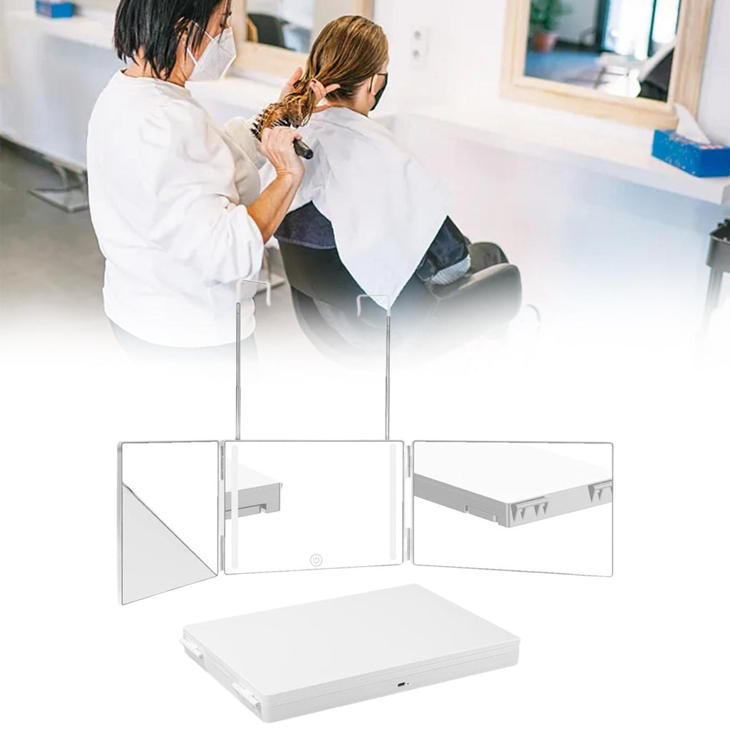- 【Salon Mirror】: Our 360 mirror with a three panel design offers a wide angle viewing range, making self care such as haircutting, shaving, hair dyeing, curling, or makeup application a fun experience.
