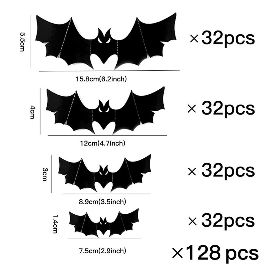 Maxbell 3D Bat Wall Stickers Props Four Sizes for Indoor Outdoor Home Party Supplies 128 Pcs