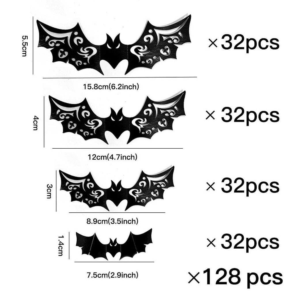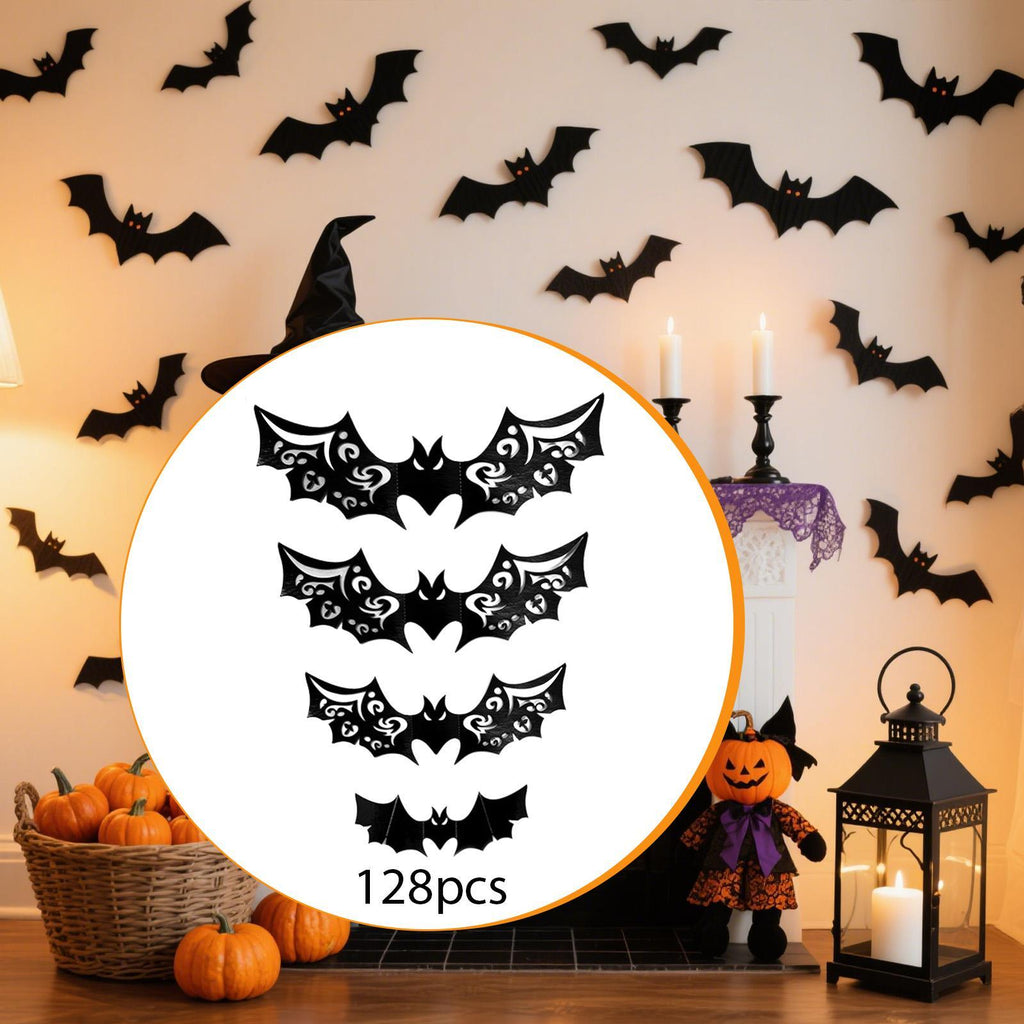 Maxbell 3D Bat Wall Stickers Props Four Sizes for Indoor Outdoor Home Party Supplies 128 Pcs Hollow Bat