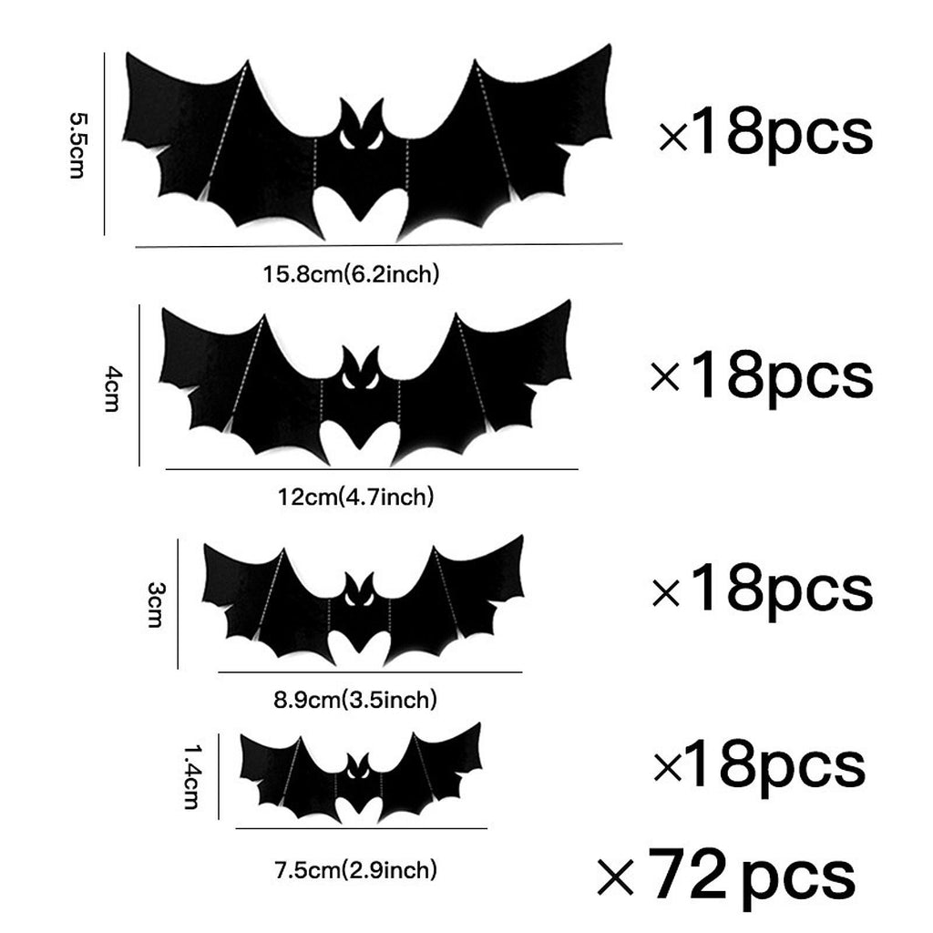 Maxbell 3D Bat Wall Stickers Props Four Sizes for Indoor Outdoor Home Party Supplies 72 Pcs