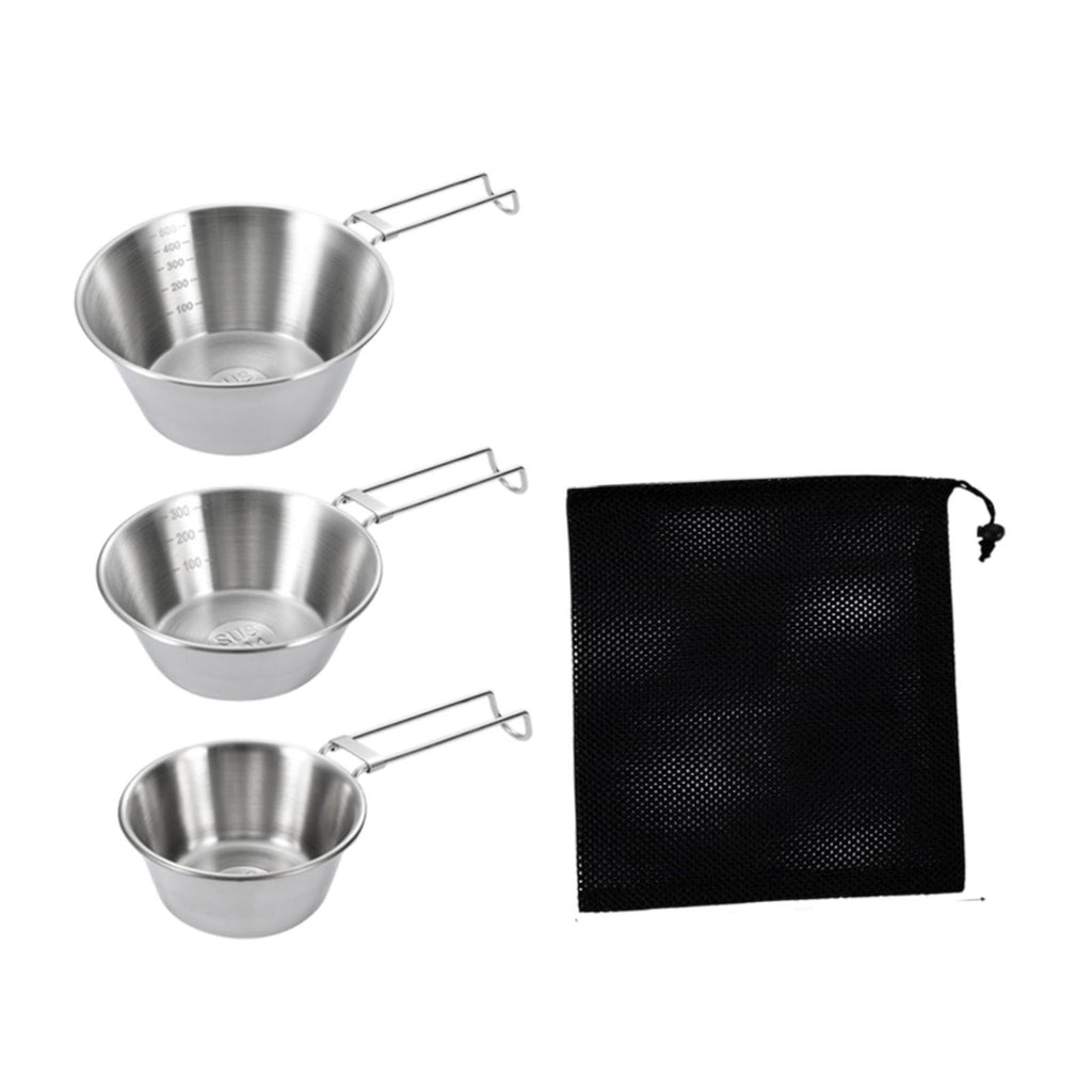 Maxbell 3Pcs Camping Bowls with Mesh Bag Compact Cups for Kitchen BBQ Outdoor Folding Handle