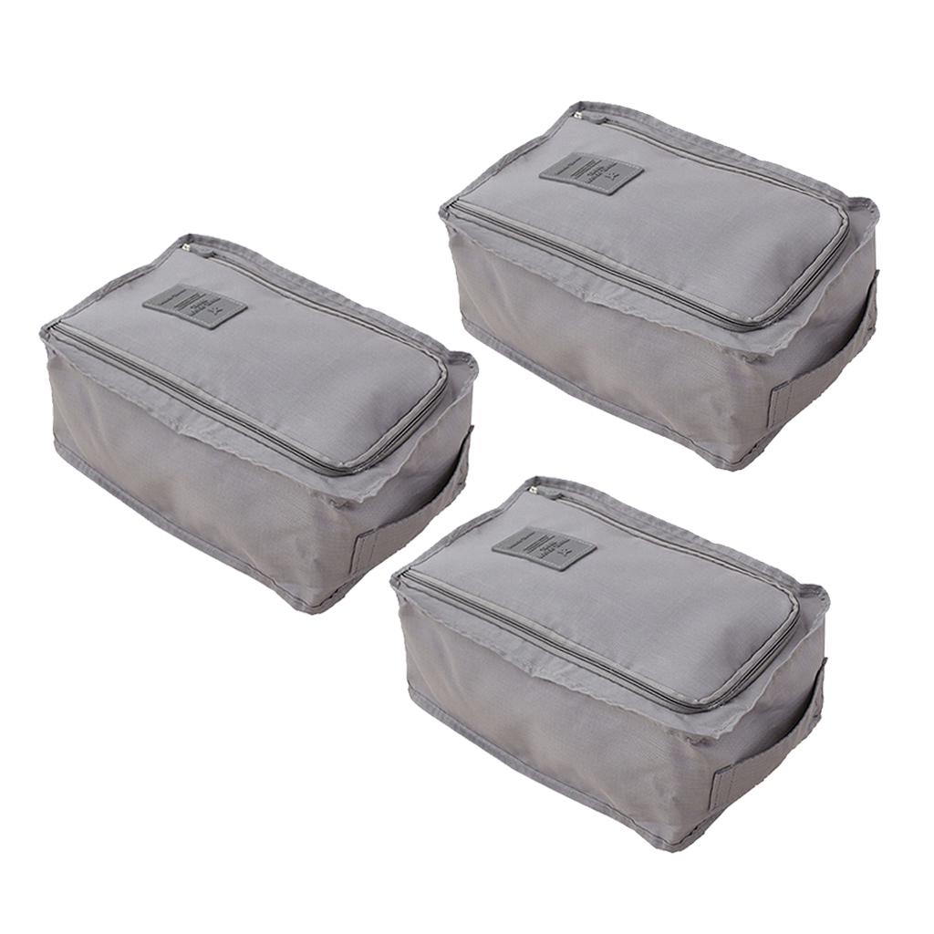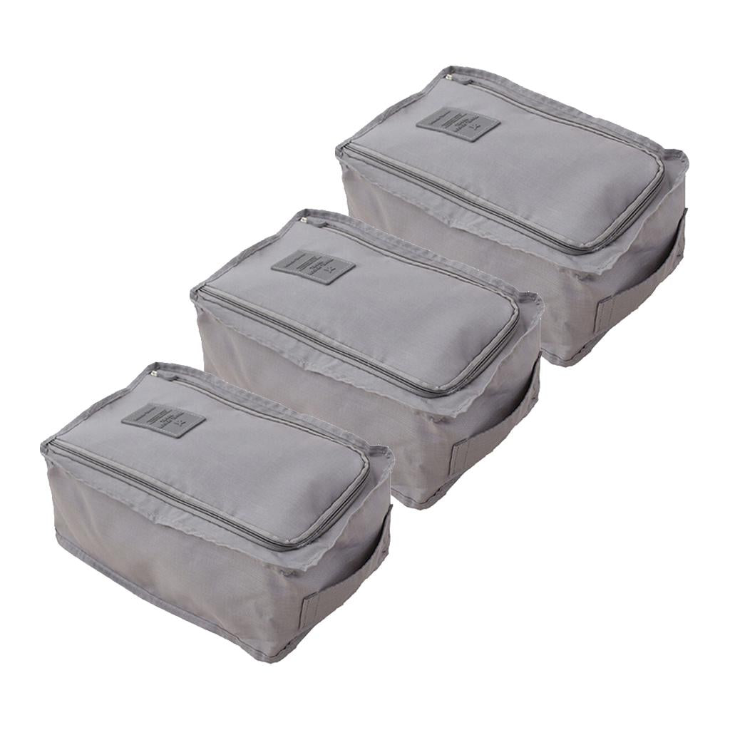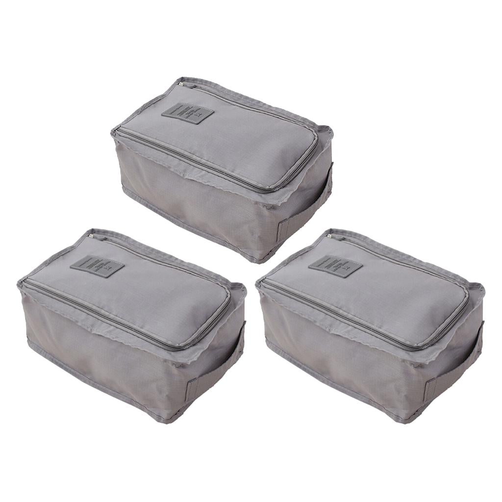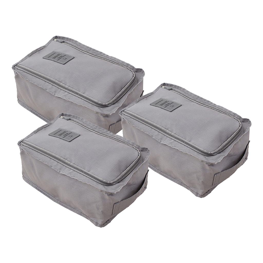 Maxbell 3pcs Household Travel Gym Shoes Organizer Nylon Zip Bag Box Waterproof Gray
