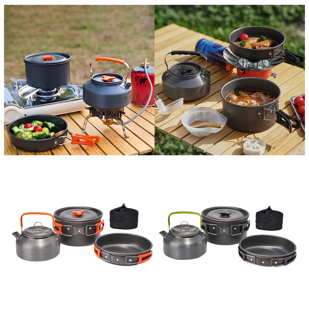 Maxbell 3x Camping Cooking Set Camping Cookware for Outdoor Cooking Fishing Trekking Orange