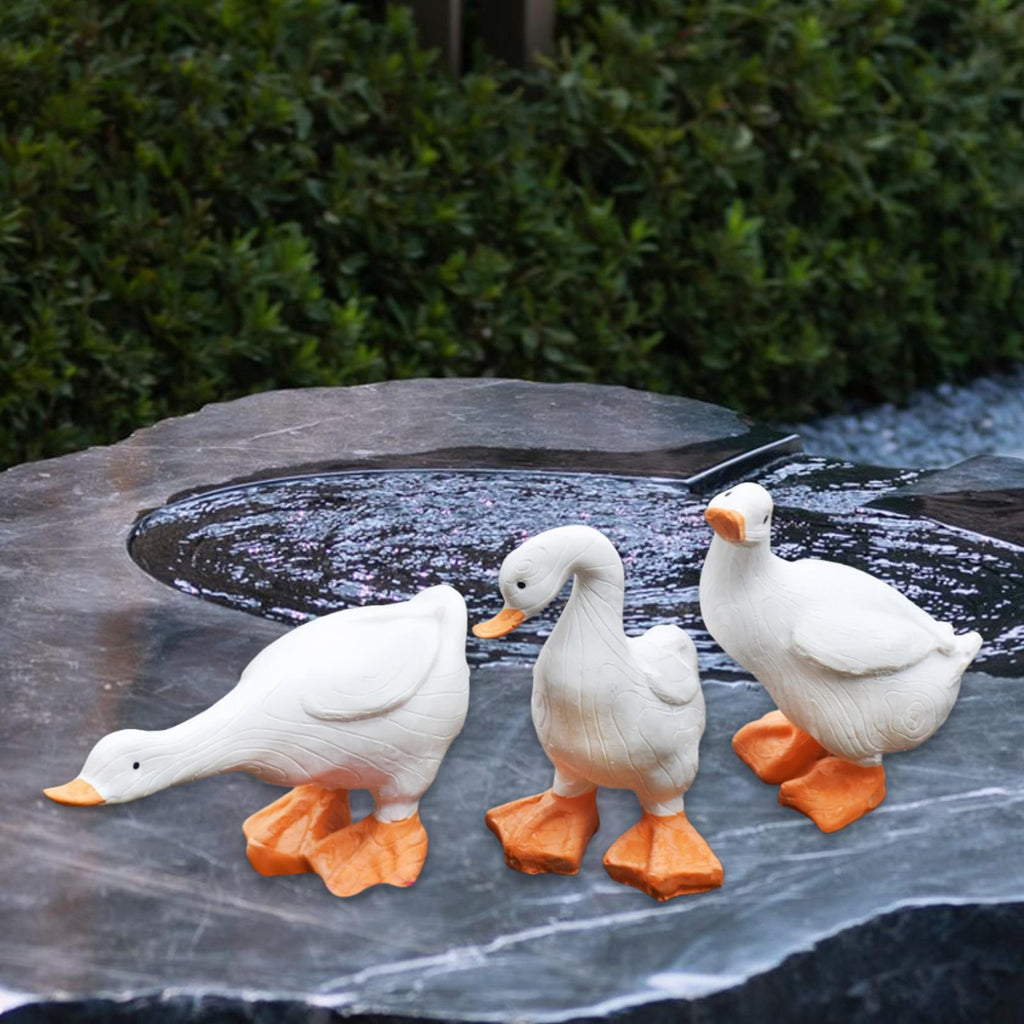 Maxbell 3x Duck Figurines Art Crafts Small Sculptures for Porch Indoor Outdoor Shelf