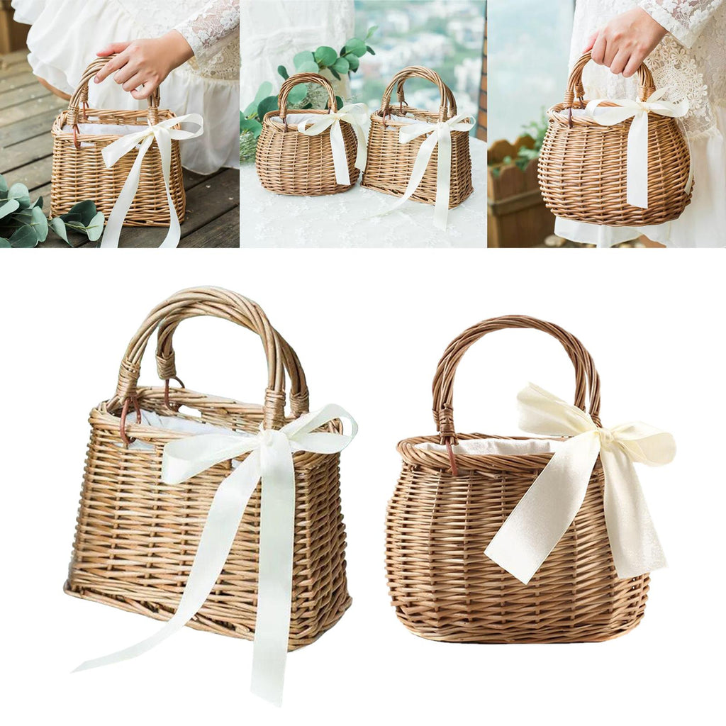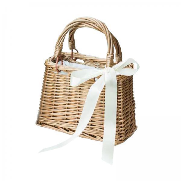Handmade rattan with decorative ribbon bows with two carrying handles.