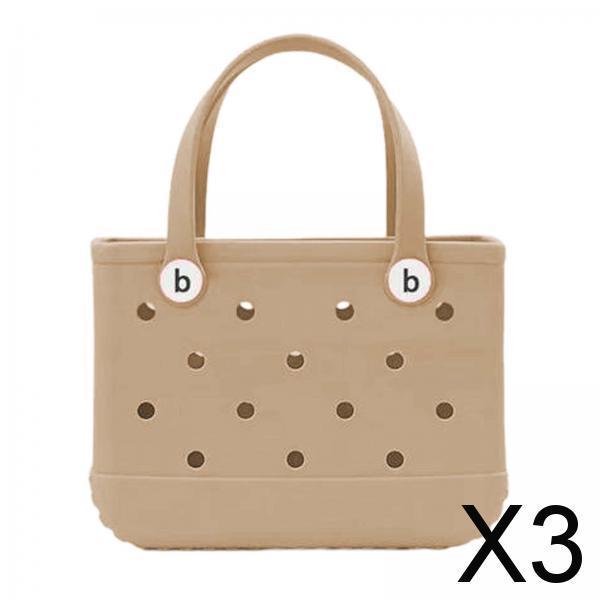 Maxbell 3xHole Bag Waterproof Washable Fashion Open Tote Bag for Shopping Travel Beach Khaki