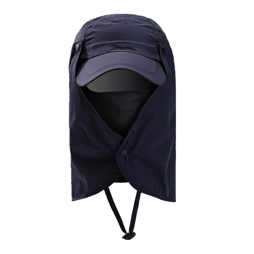 Maxbell 3xOutdoor Hiking Hat with Removable Face Neck Flap Cover Breathable for Garden Dark Blue