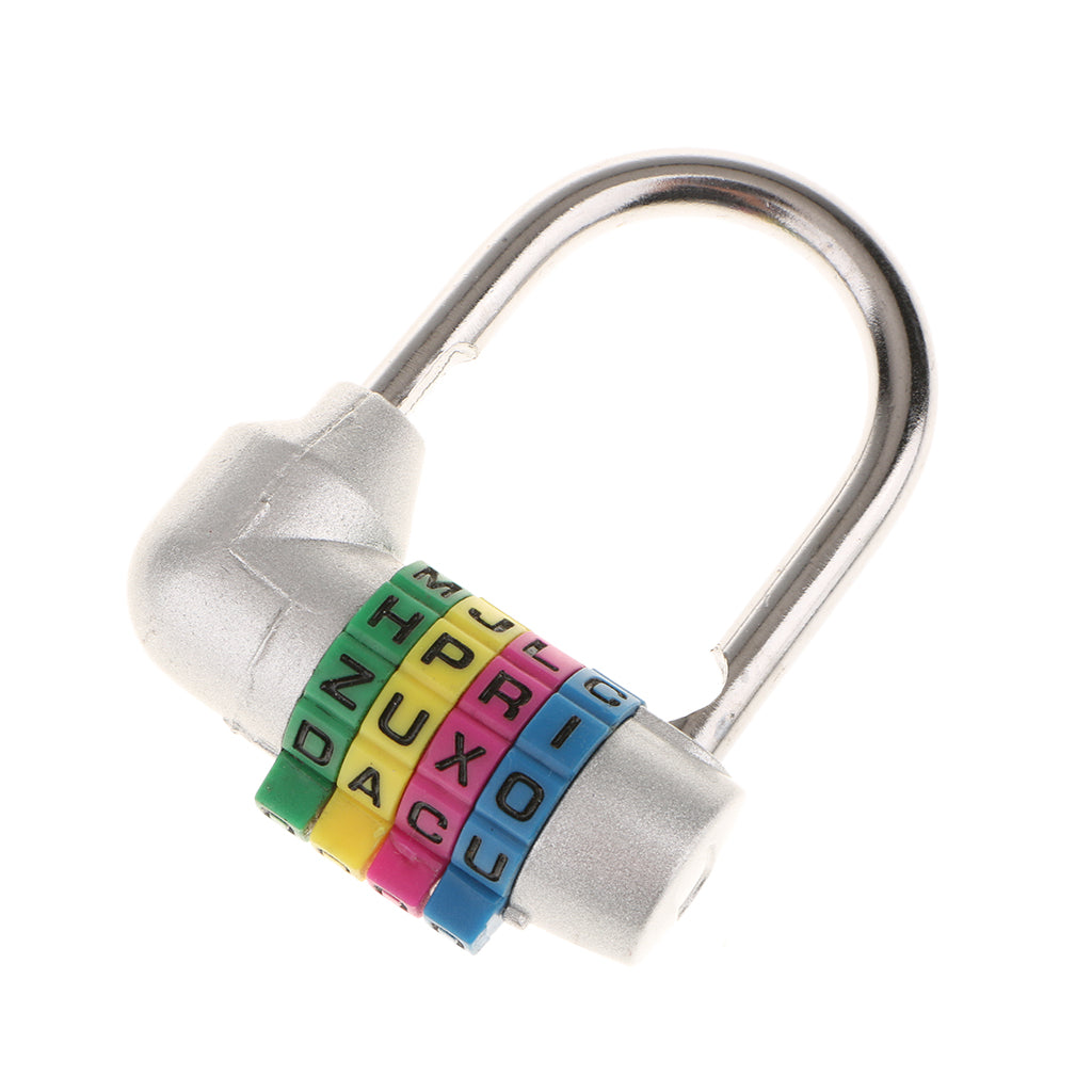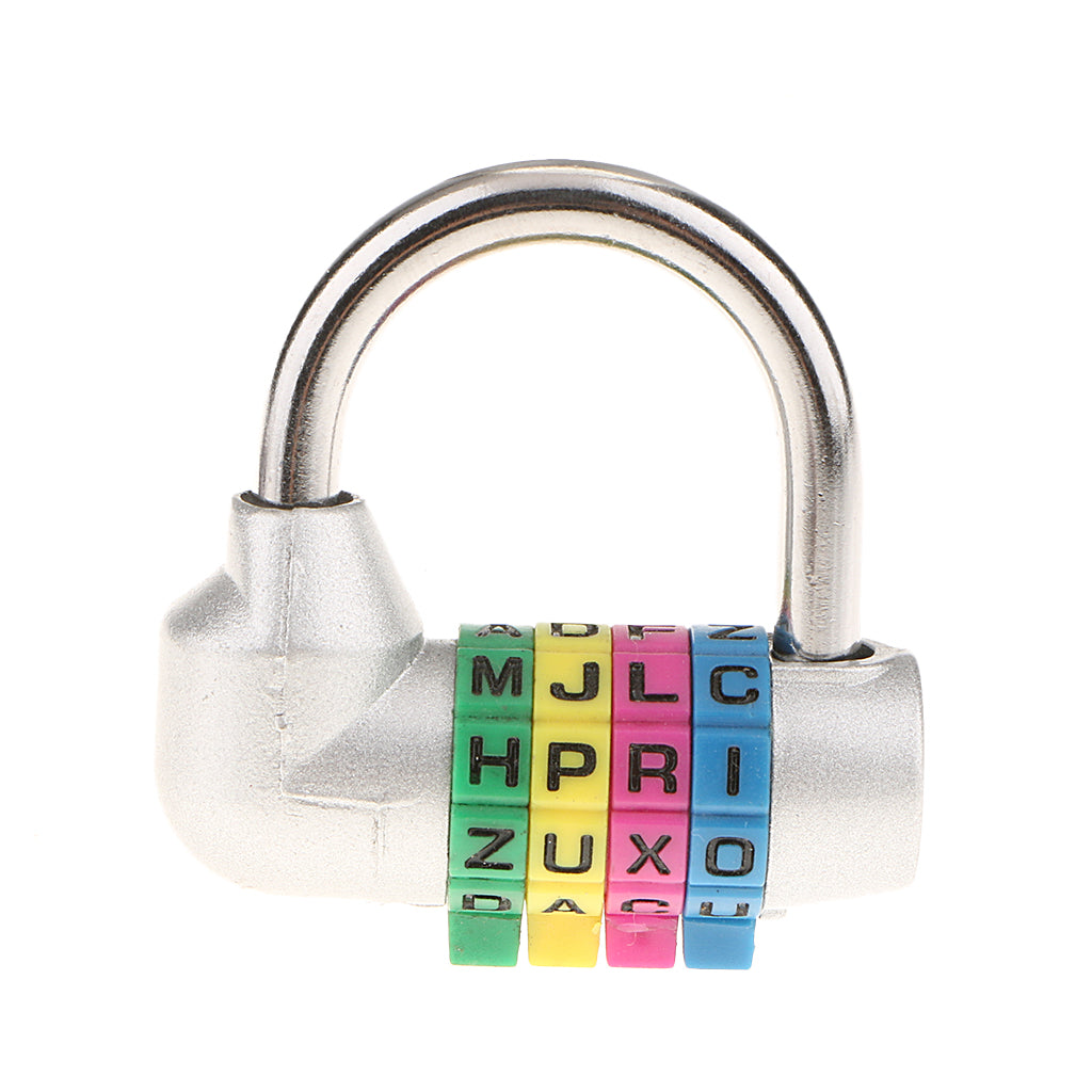 Max 4 Digit Dial Letter Combination Padlock Travel Luggage Suitcase Lock Silver