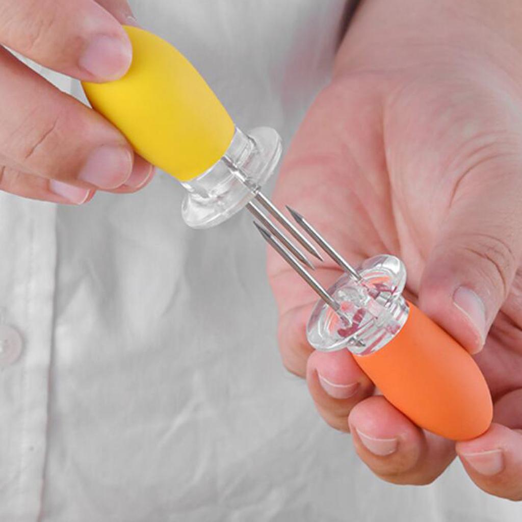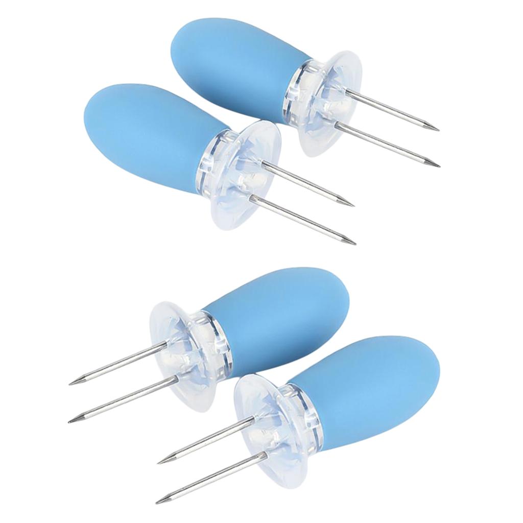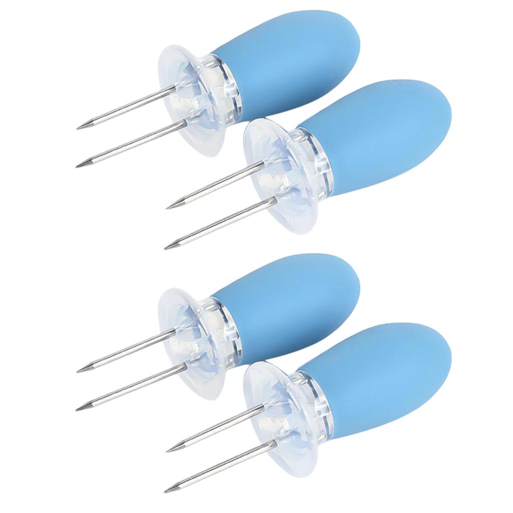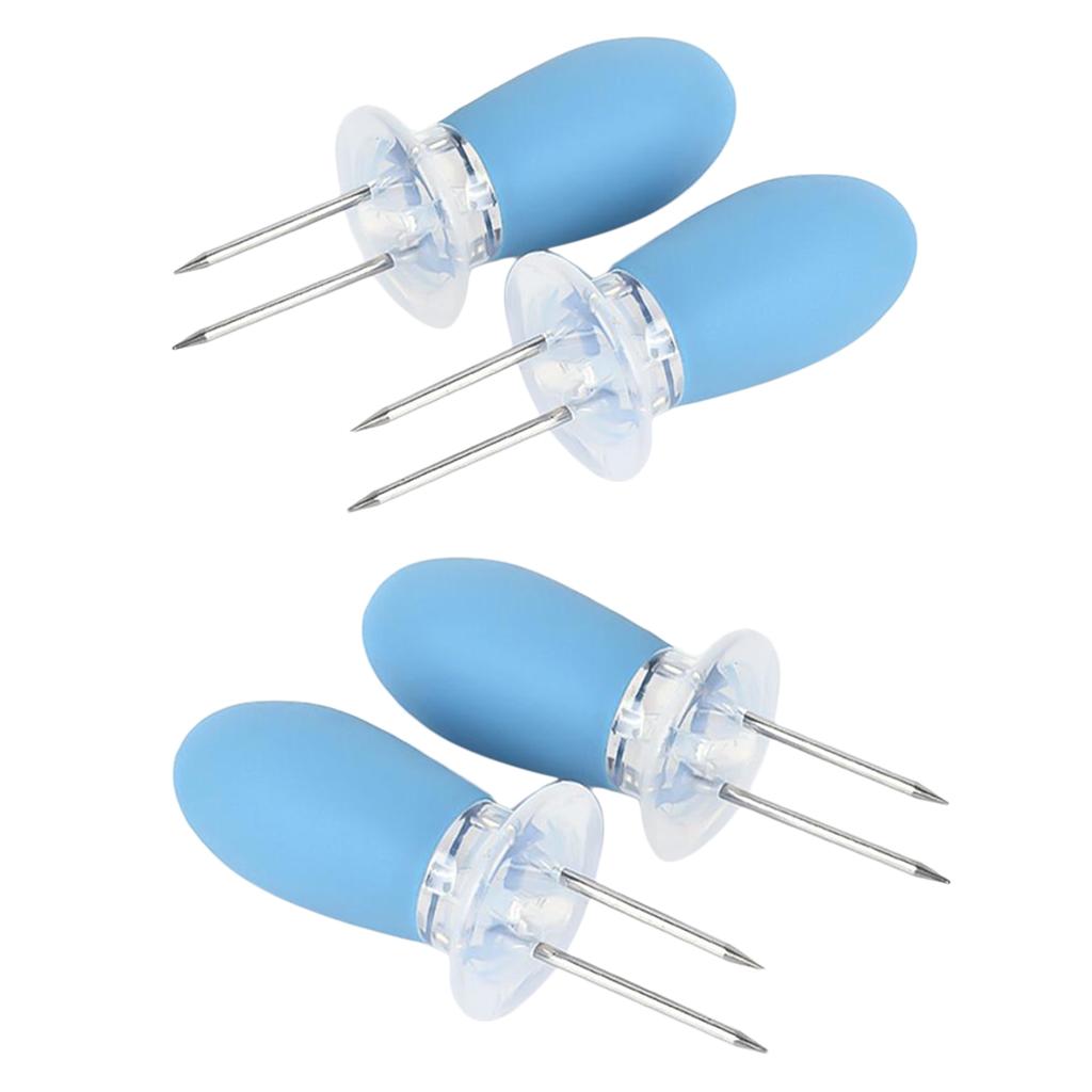Maxbell Maxbell 4 Pieces Outdoor Barbecue Skewer Corn Cob Needle Fruit Fork Holder Blue