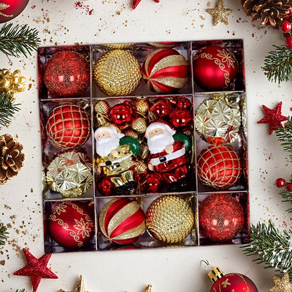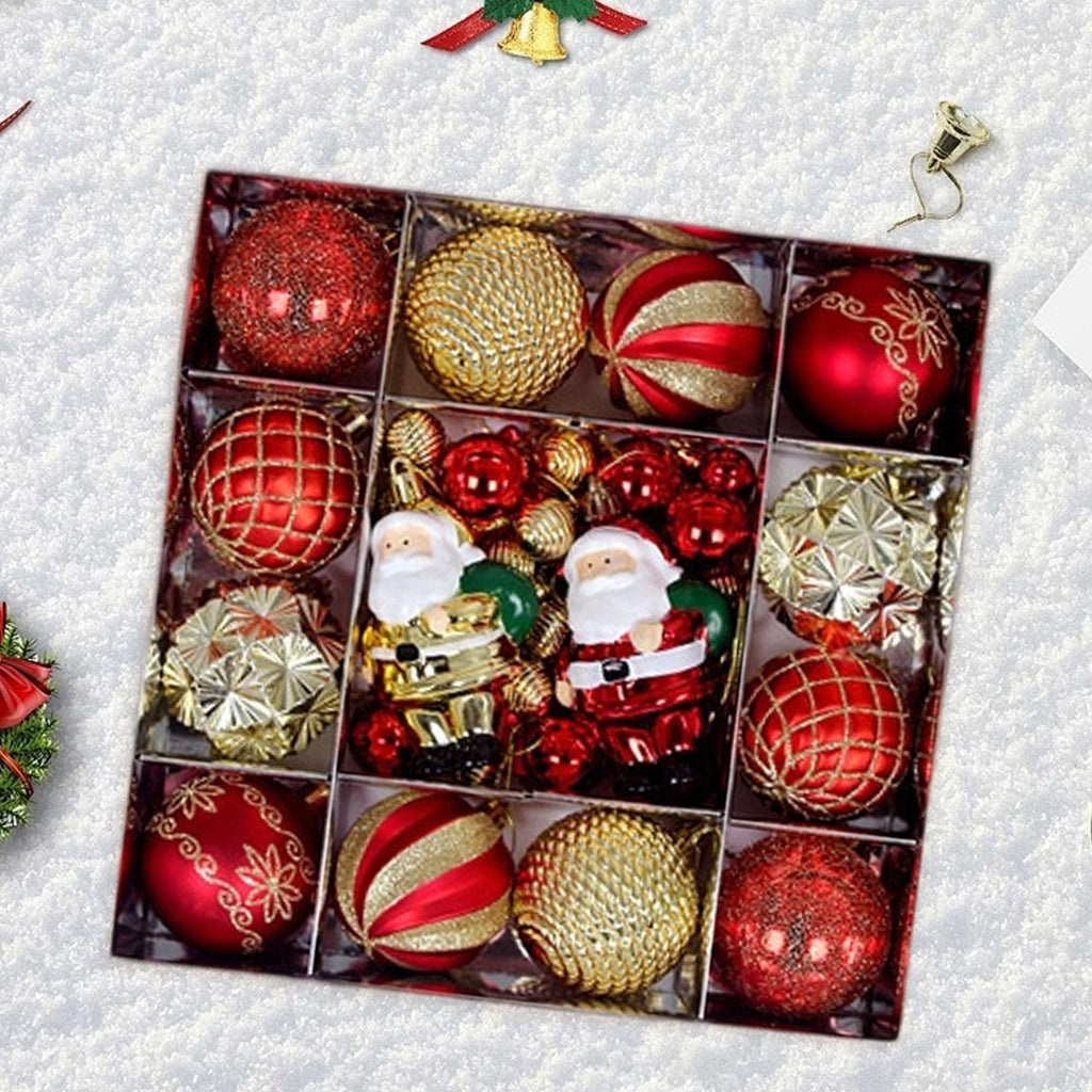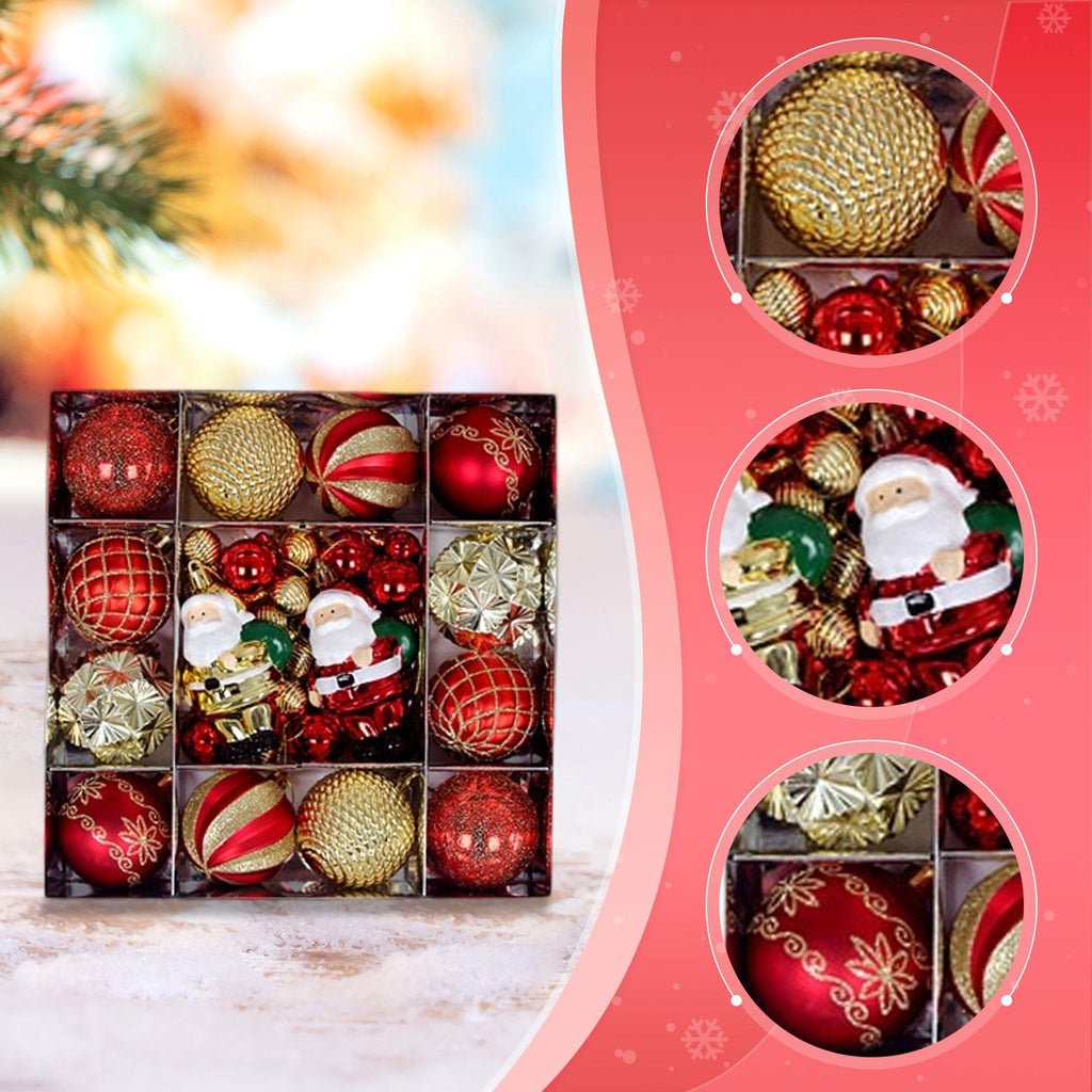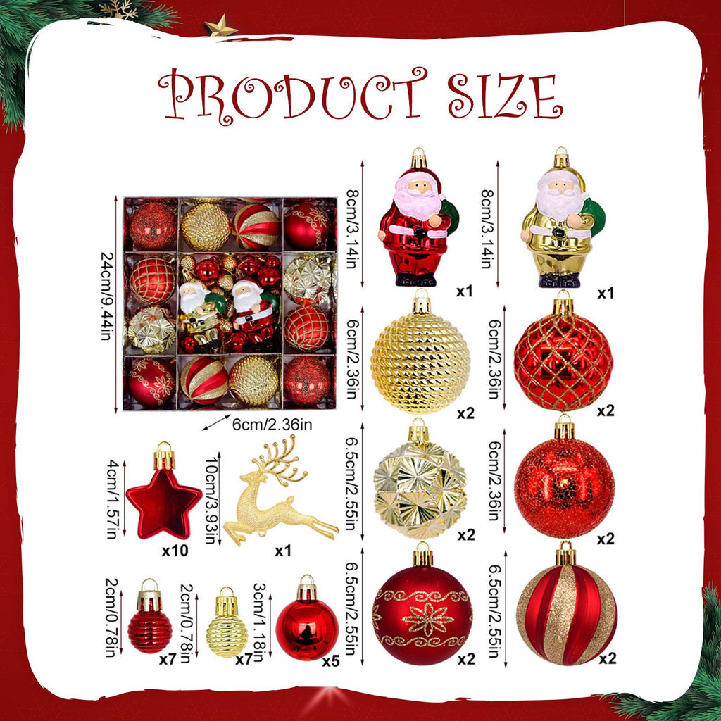 Maxbell 44Pcs Christmas Balls DIY Pendants Xmas Balls for Outdoor Festivals New Year Gold Red Old Man