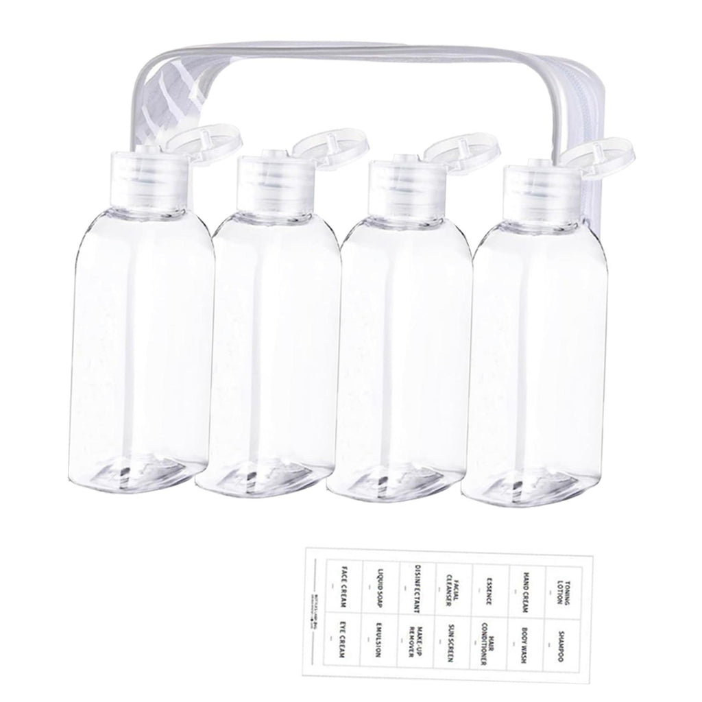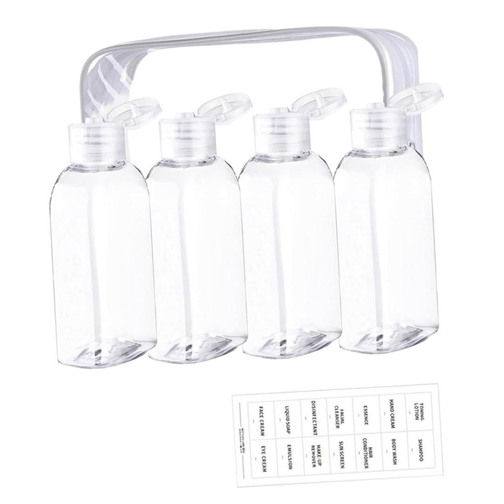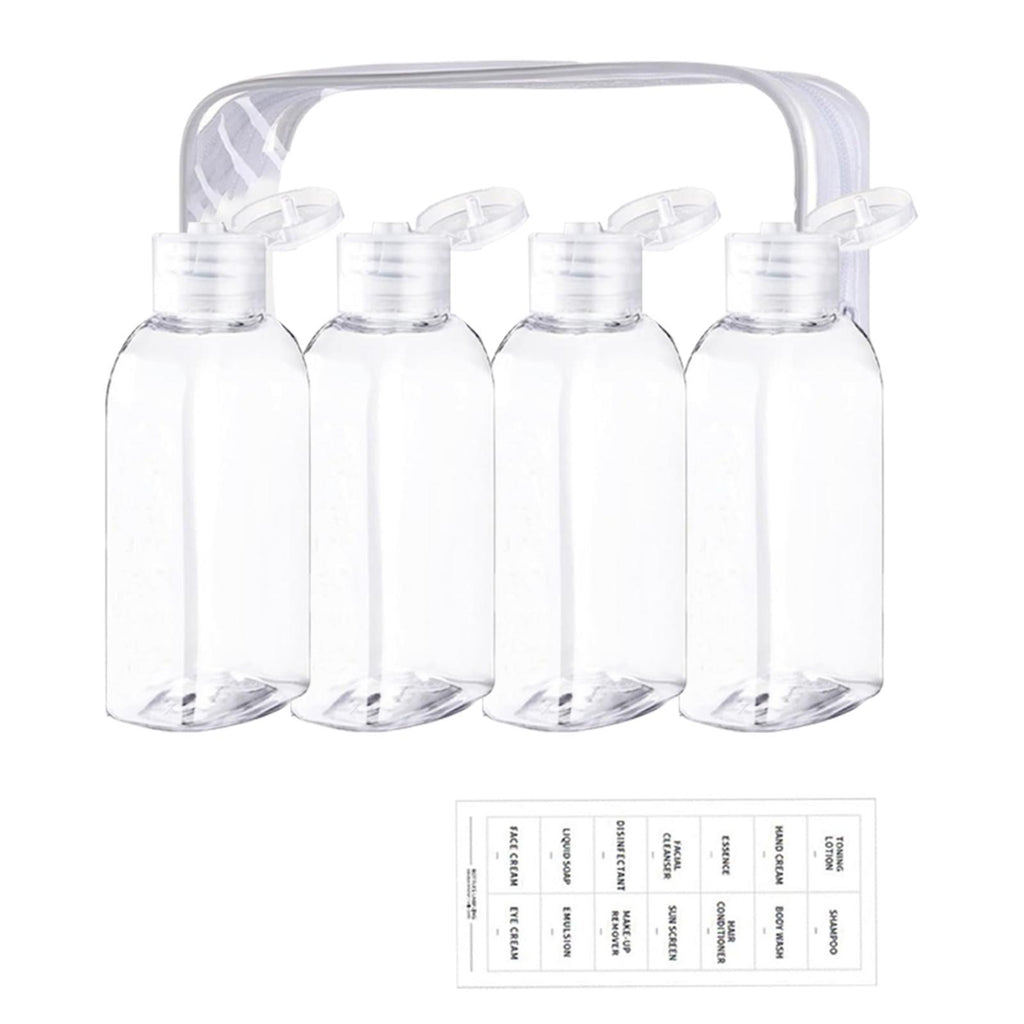 【Complete Set】: This set includes four 100ml travel bottles with a storage bag and a sheet of labels. Overall imensions are 18cmx14cm, providing a convenient solution for all your travel needs