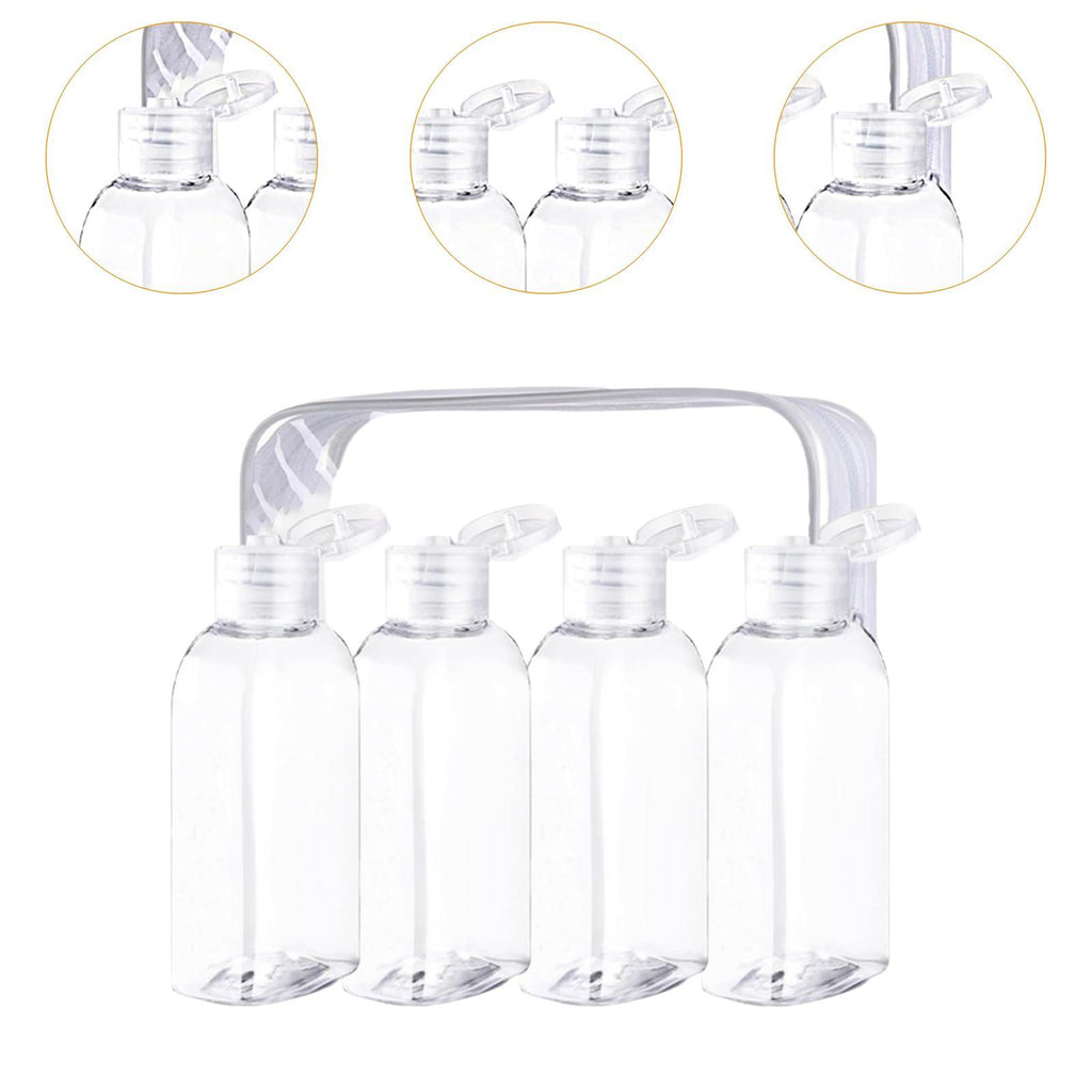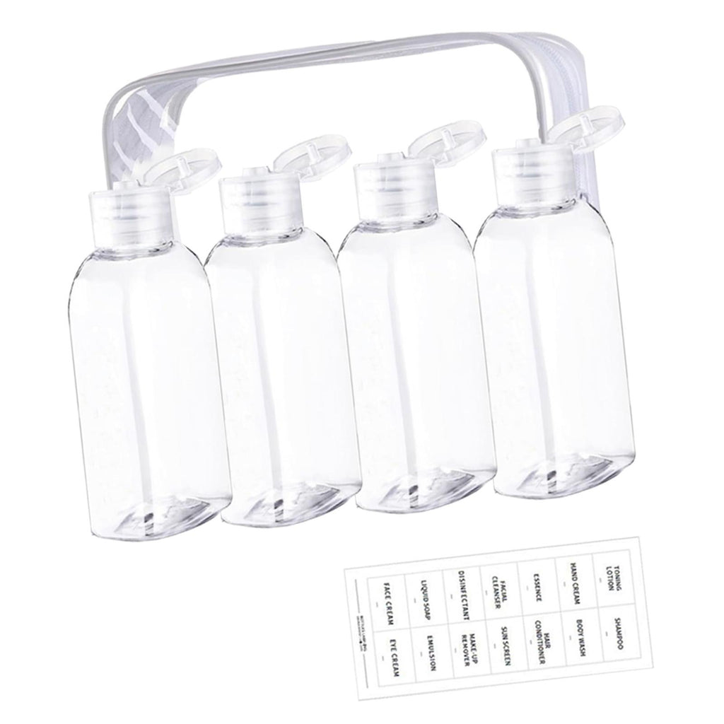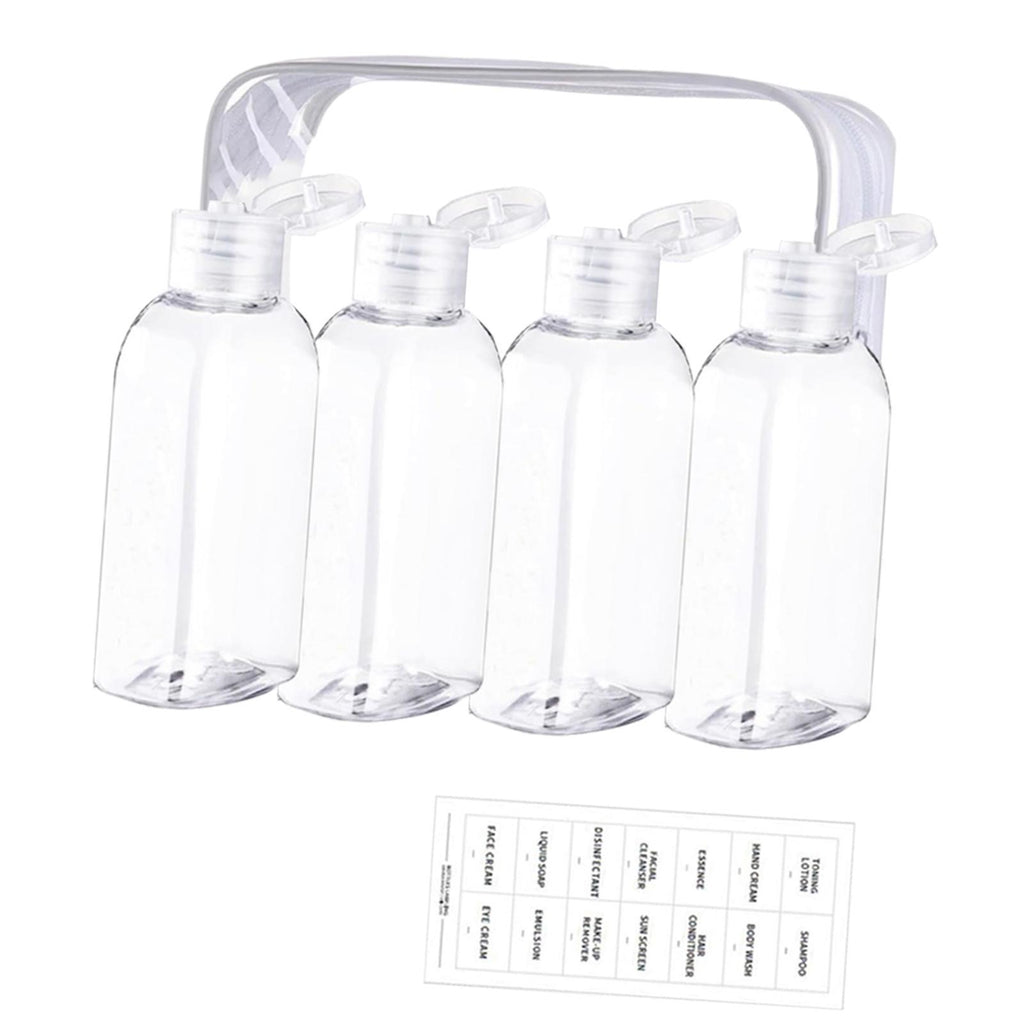 【Complete Set】: This set includes four 100ml travel bottles with a storage bag and a sheet of labels. Overall imensions are 18cmx14cm, providing a convenient solution for all your travel needs