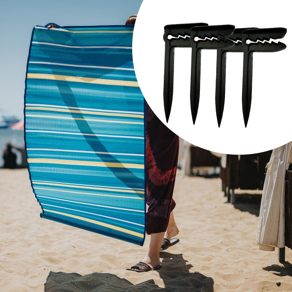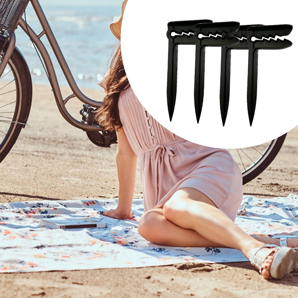 4x Beach Stakes Clamps Outdoor Beach Towel Anchor Clips for Beach Day Travel black