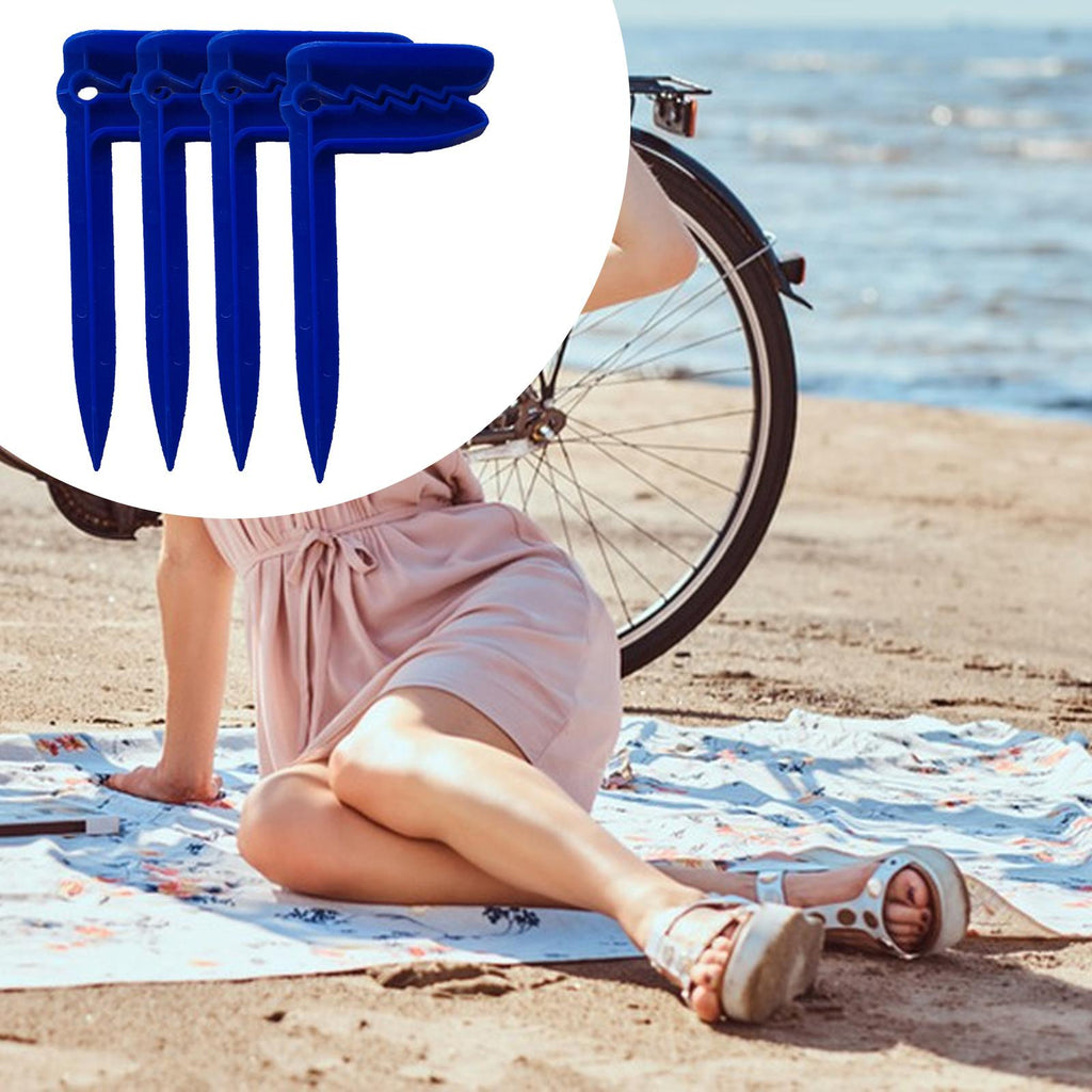 4x Beach Stakes Clamps Outdoor Beach Towel Anchor Clips for Beach Day Travel dark blue