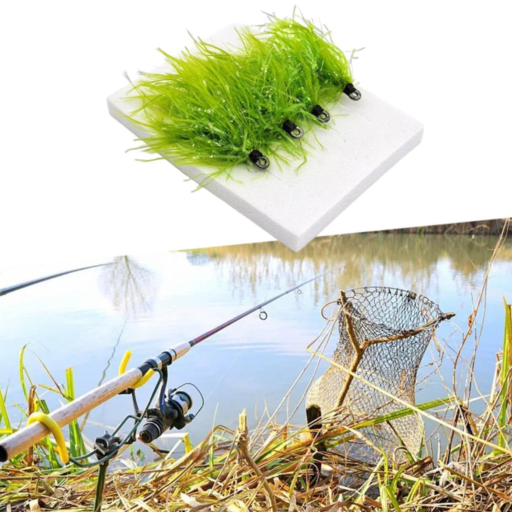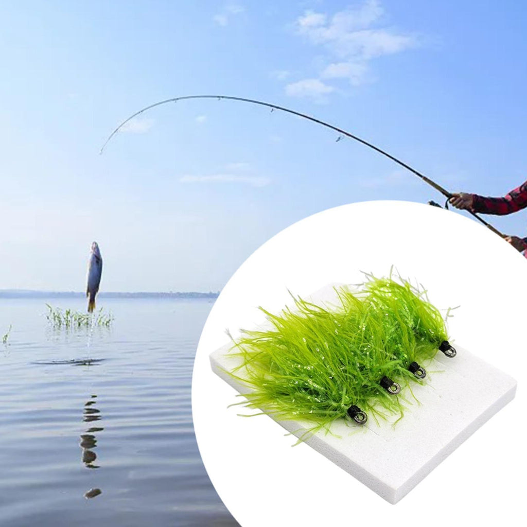 【SUITABLE FOR】: Fly Fishing Hooks are great for catching a variety of omnivorous fish such as grass carp, carp, etc. Designed to mimic real aquatic plants, it features reflective bright threads to attract fish. It's made with numerous green threads for a fuller look.