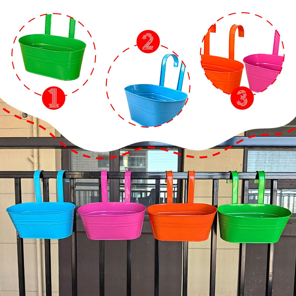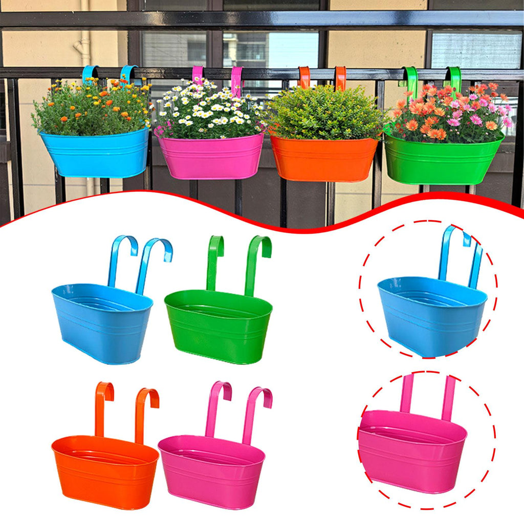 Maxbell 4x Hanging Flower Pots Bucket Plant Pots for Courtyard Indoor Outdoor Garden Style B